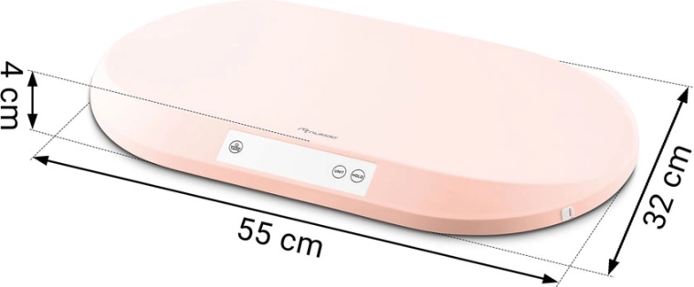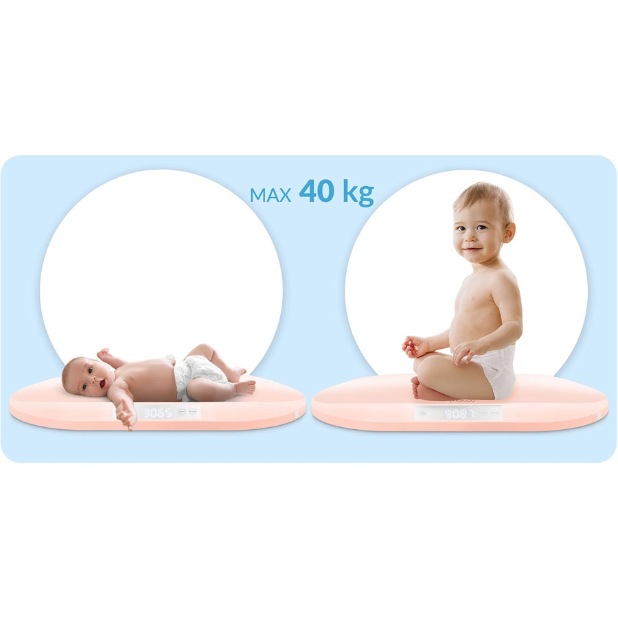 A mérleg áttekinthető kezelést kínál, kézi HOLD funkciót a mozgékony gyermekek stabil eredményének rögzítéséhez, TARE funkciót az alátét vagy pelenka mellett végzett méréshez, valamint választható mértékegységeket (gramm, kilogramm, uncia, font). A legfeljebb 40 kg teherbírásnak köszönhetően a mérleg hosszú távon használható – újszülöttkortól iskoláskorig. A beépített mérőszalag továbbá lehetővé teszi a fejkörfogat vagy testméretek ellenőrzését 150 cm-ig.