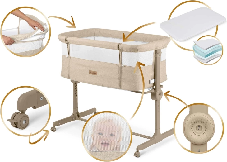Nukido állítható magasságú, matraccal ellátott baba oldalsó kiságy