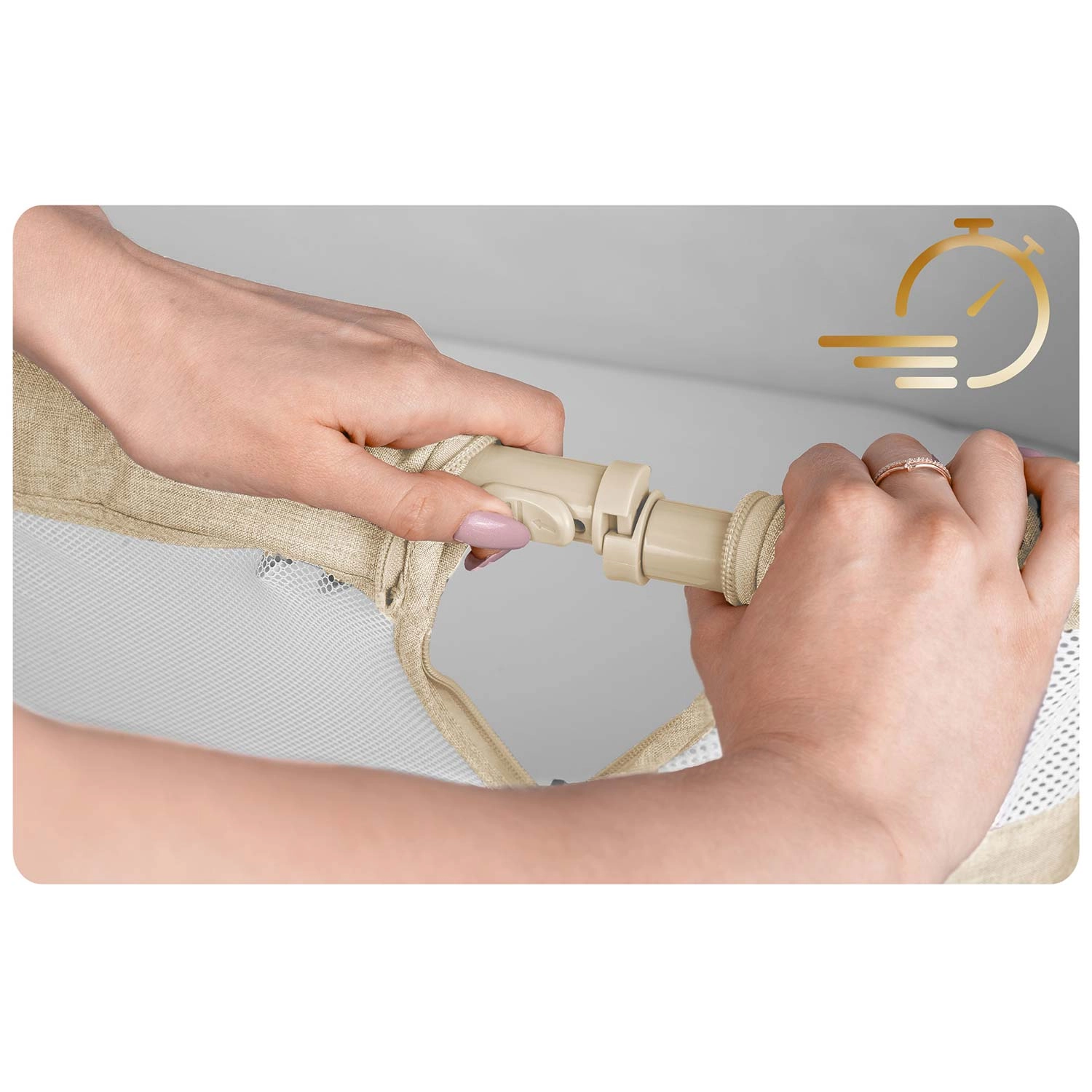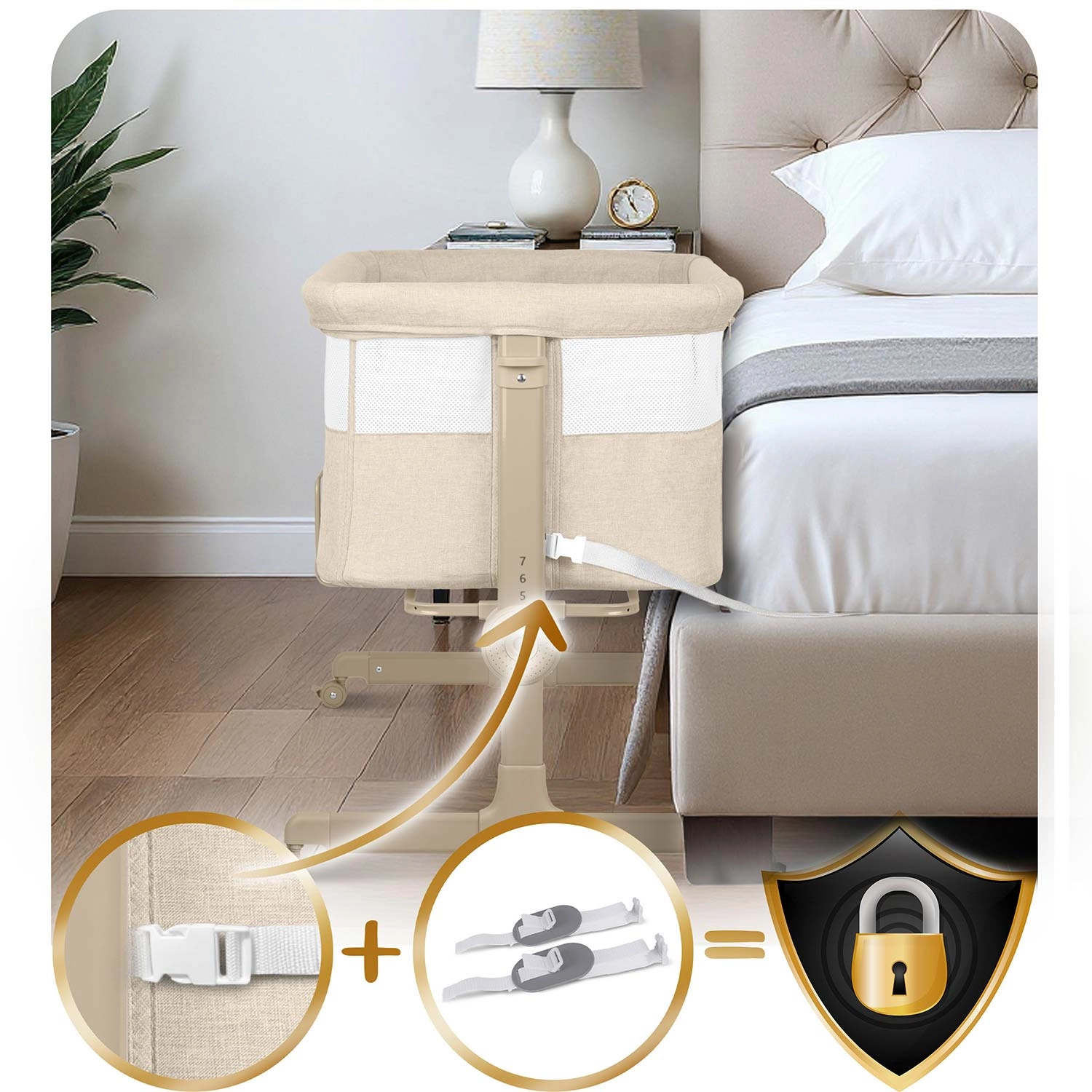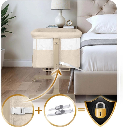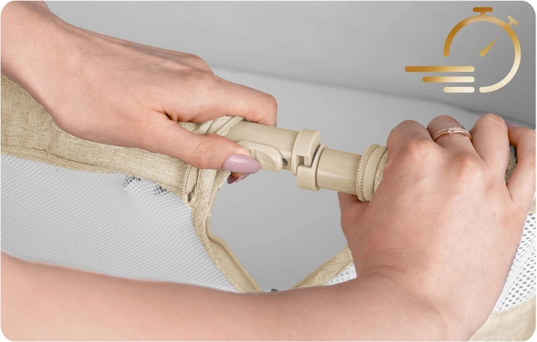 • Biztonságos rögzítés az ágyhoz univerzális pántokkal – fúrás nélkül, gondtalanul.