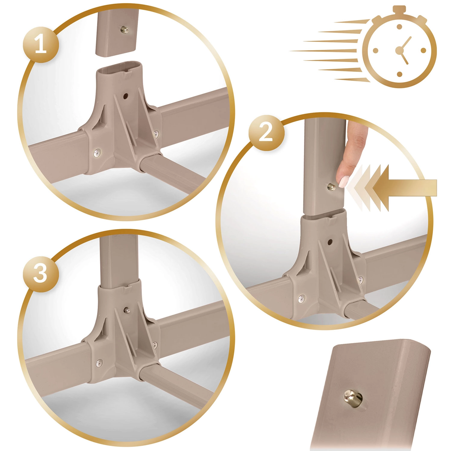 Összecsukható, fém váz, „Quick Click” gyorscsatlakozók