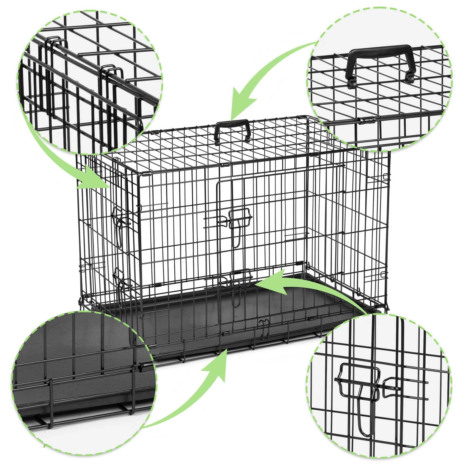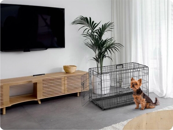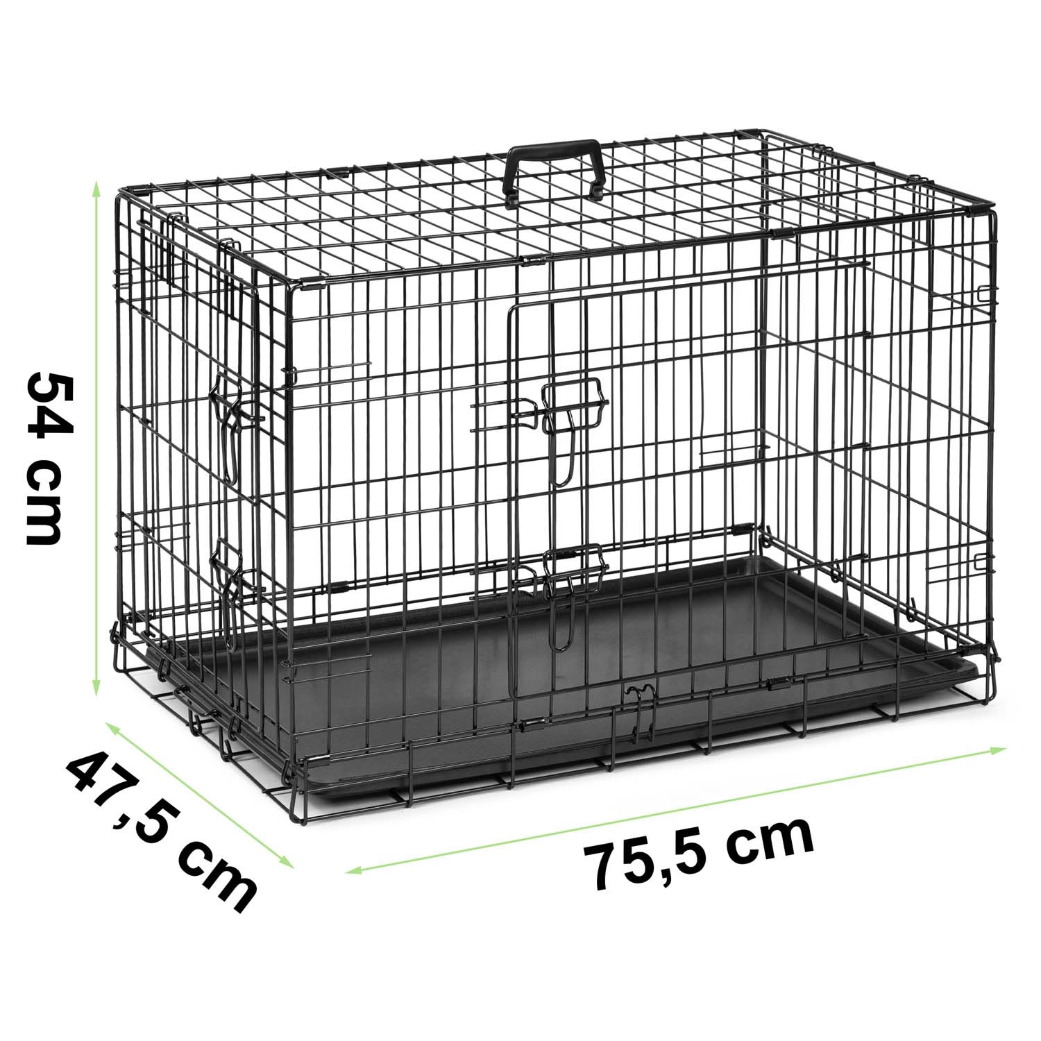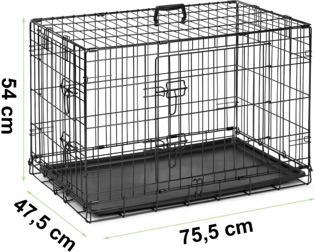 Ez az S méretű, összecsukható fém kutyakennel ideális mindennapi használatra, tréninghez és utazáshoz. A stabil drótvázas szerkezet porszórt felülettel kiváló szellőzést és rálátást biztosít, míg a kihúzható műanyag tálca megkönnyíti a karbantartást. A két ajtó biztonságos tolózárakkal kényelmes bejutást és változatos elhelyezést tesz lehetővé a lakásban és az autó csomagtartójában is.