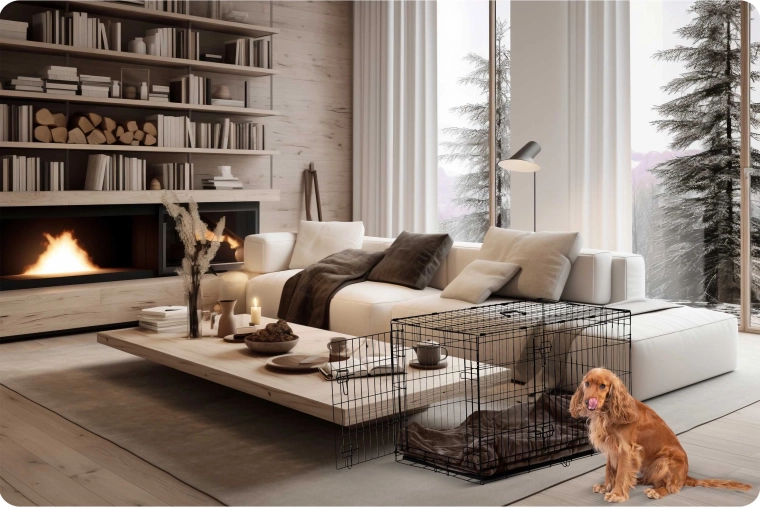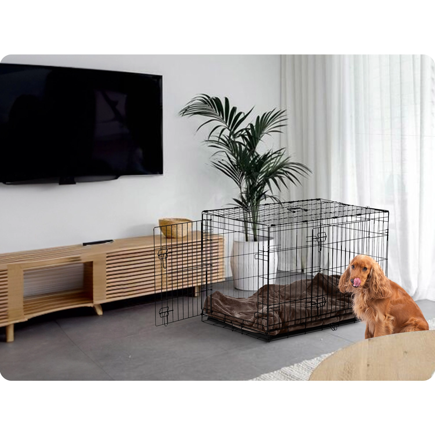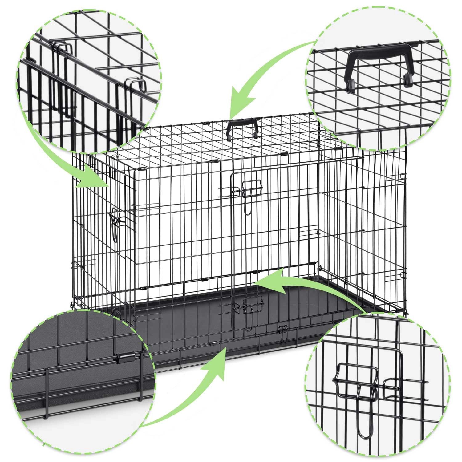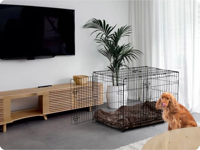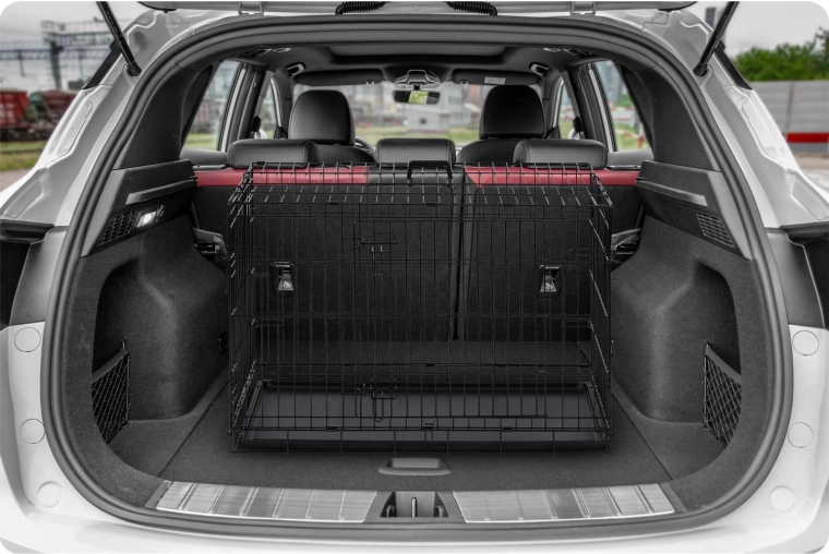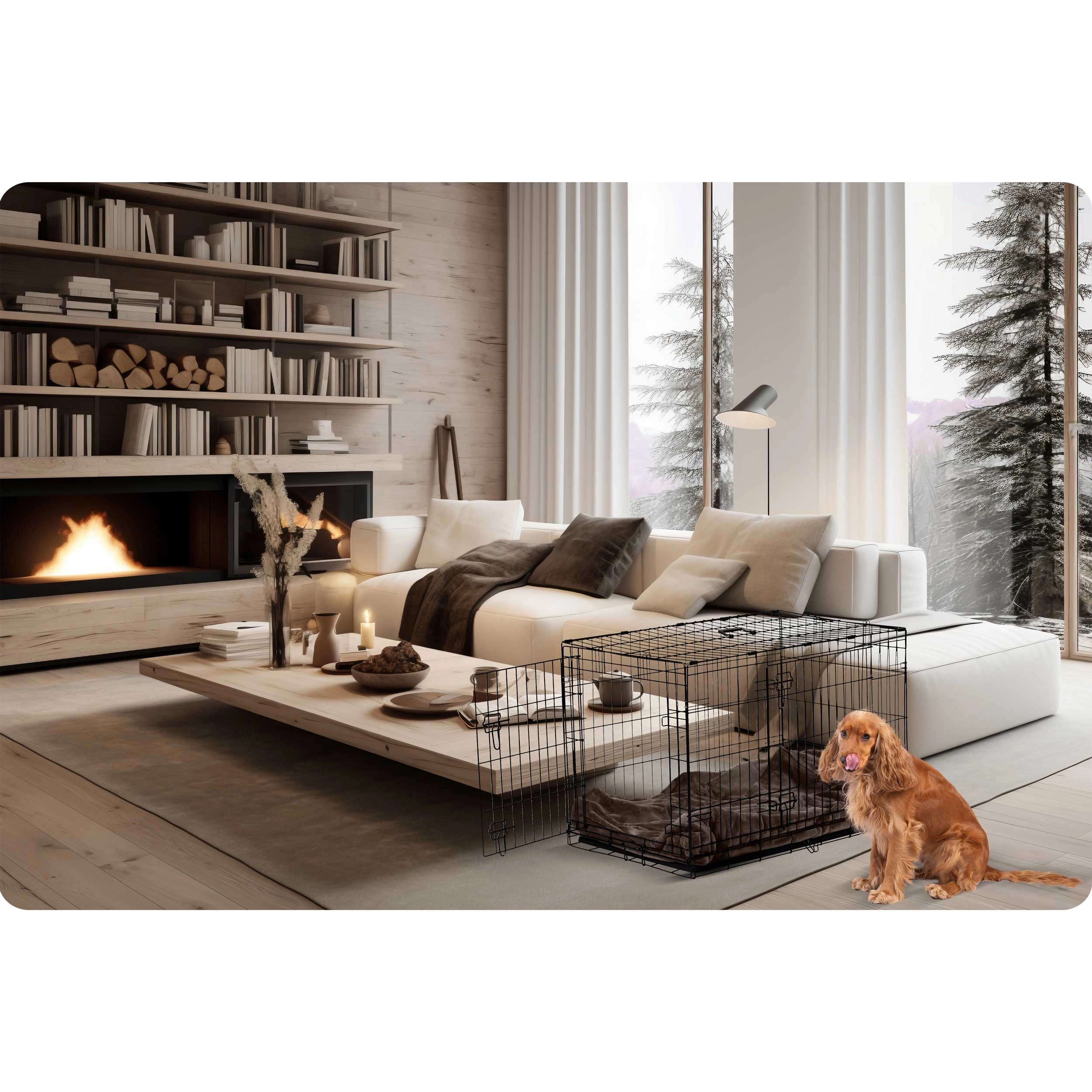 Stabil acélszerkezet biztonsági reteszekkel a nyugodt pihenésért és a megbízható zárásért szállítás közben. A ketrec kiváló szellőzést biztosít, jó rálátást enged a környezetre, és segít magabiztosabban érezni magát a kutyának, akár otthon, kiránduláson vagy autóban van.