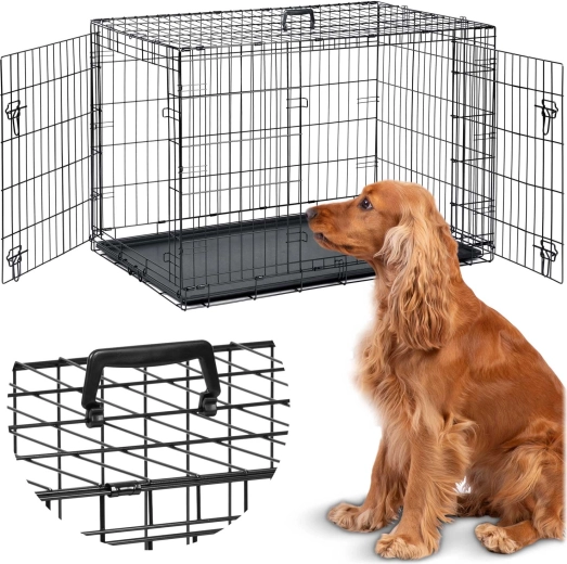 Praktikus és tartós fém kutyaketrec M méretben, amely biztonságos és kényelmes helyet biztosít otthon és utazás közben kedvencednek. A kettős ajtónak (elülső és oldalsó), a könnyen tisztítható, kihúzható tálcának és a gyorsan, lapos bőrönddé összecsukható kialakításnak fogantyúval köszönhetően ideális mindennapi használatra, tréninghez és autós szállításhoz.
