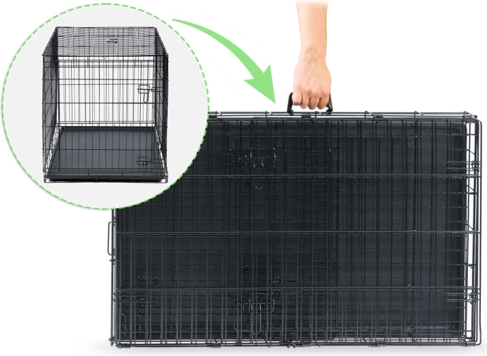 Az összecsukható szerkezet néhány másodperc alatt lapos formára alakítható. A fogantyú révén a ketrec könnyen hordozható, tárolható és szállítható a csomagtérben.