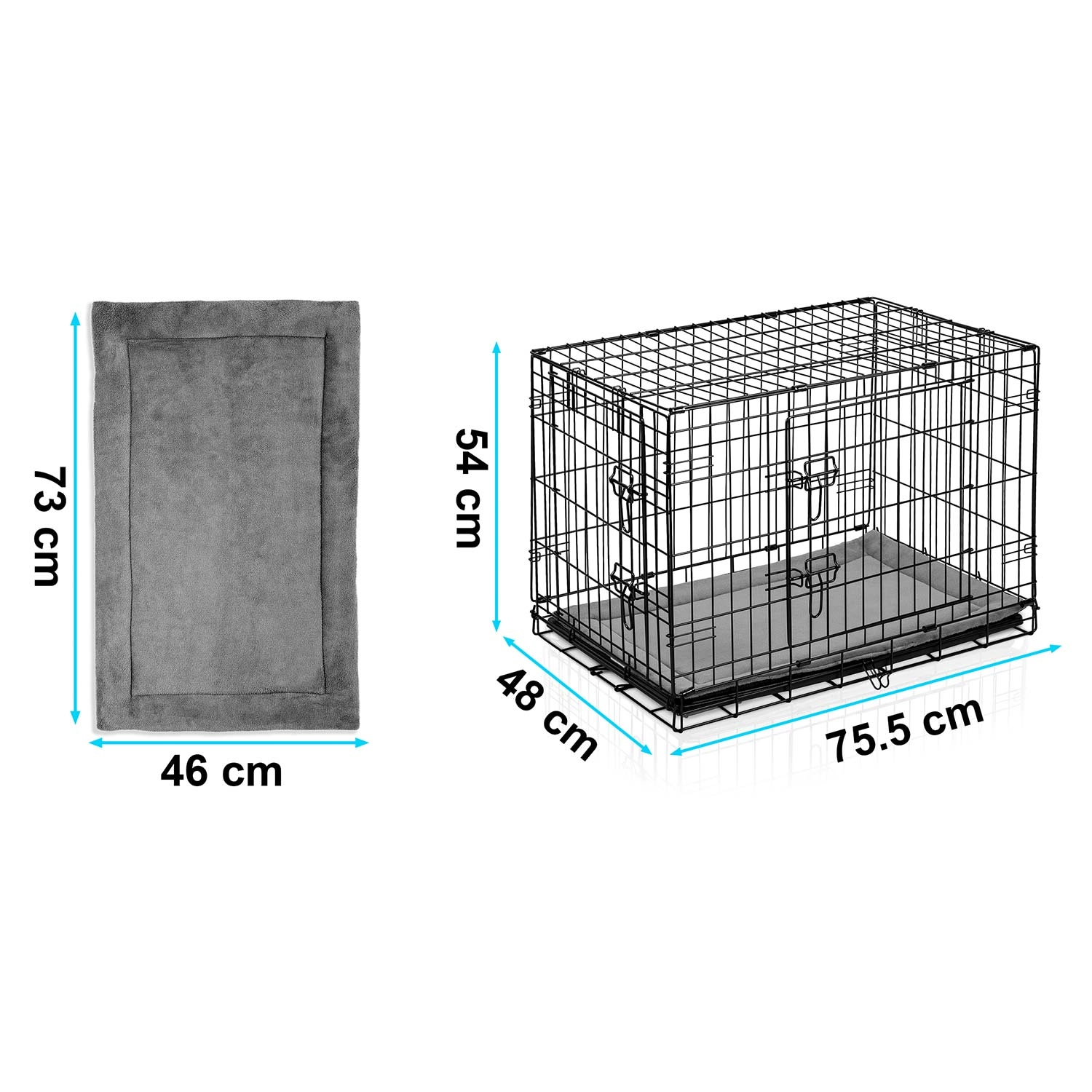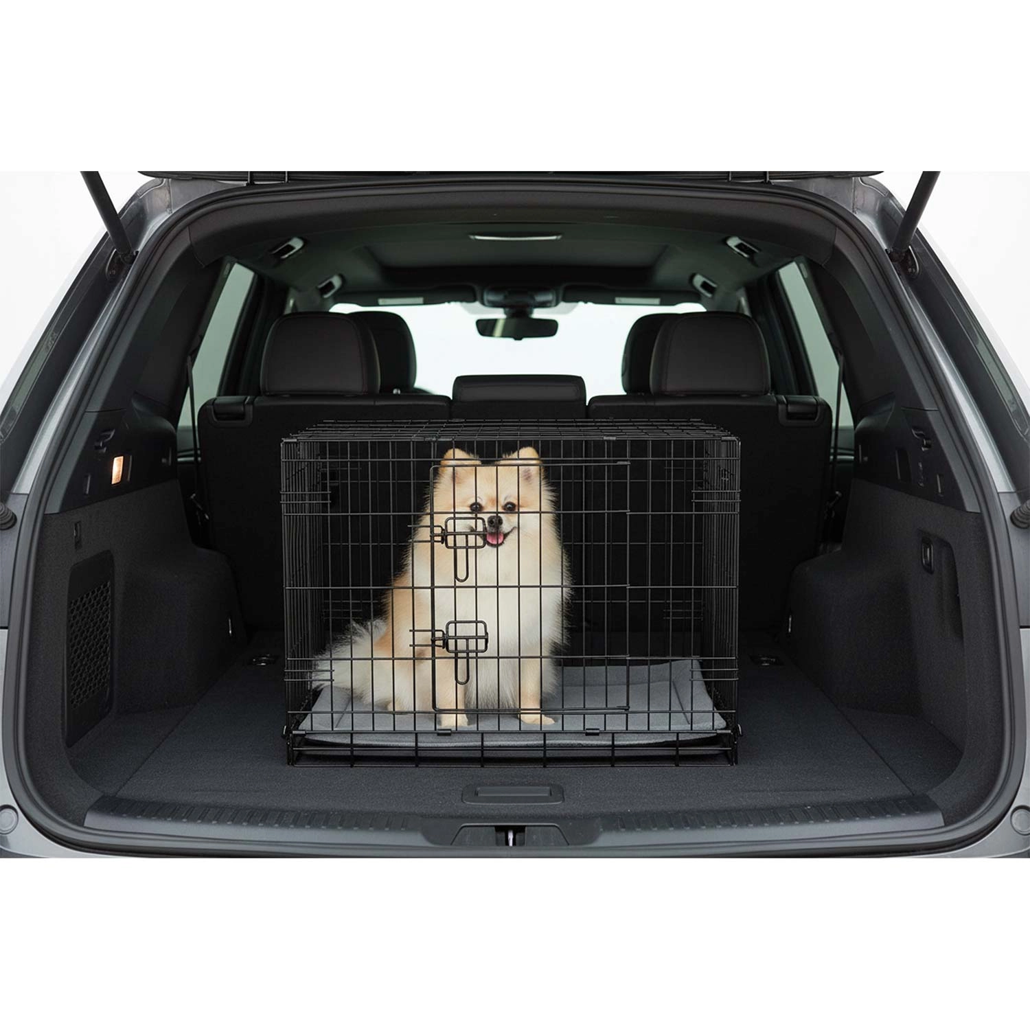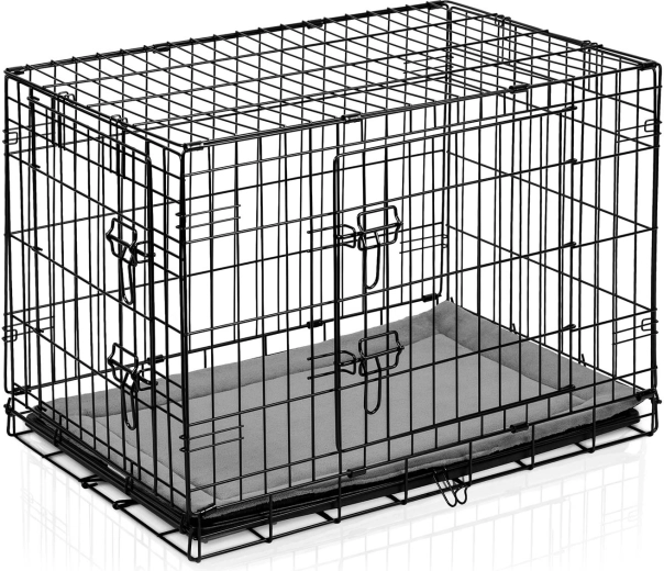 Masszív acél ketrec porszórt vázzal, amely nyugodt és védett helyet biztosít a kutyának. Az elülső és oldalsó ajtókon lévő dupla biztonsági reteszeknek köszönhetően könnyen elhelyezhető a belső térben és a rendelkezésre álló helyhez igazítható. A csomag része egy puha fekhely a nagyobb kényelemért.