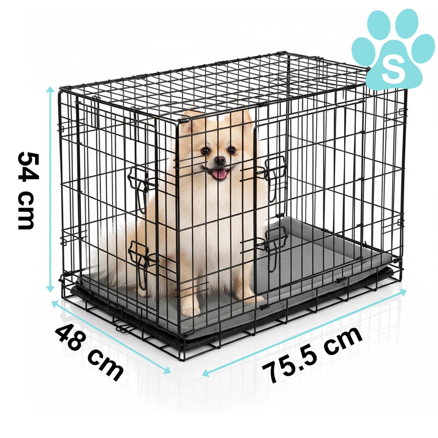 Praktikus és tartós kennel ketrec fekhellyel kis testű kutyáknak, amely biztonságot, kényelmet és kiváló szellőzést nyújt otthon és utazás közben is. Két ajtó a könnyű hozzáférésért, kihúzható tálca a gyors tisztításhoz, valamint összecsukható kialakítás lapos formára hordozófüllel a kényelmes használatért. Ideális tréninghez, pihenéshez és biztonságos szállításhoz autóban.