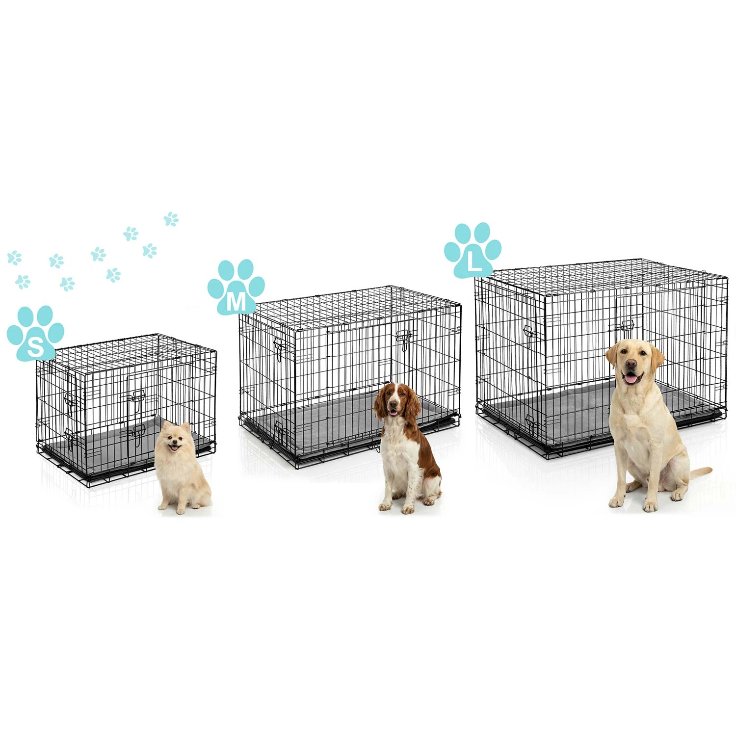 Elülső és oldalsó bejárat a rugalmas elhelyezésért és a kutyával való könnyű manipulációért. Tartós reteszek akadályozzák meg a véletlen kinyílást.