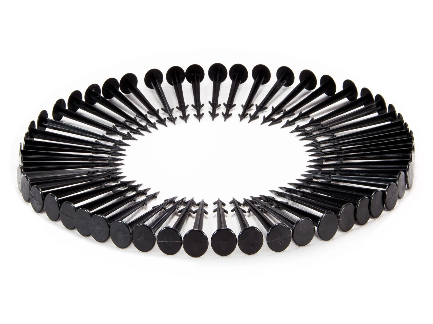 Azonnal kész a telepítésre. A széles fejű cövekek biztonságosan rögzítik a textíliát még szeles időben is.