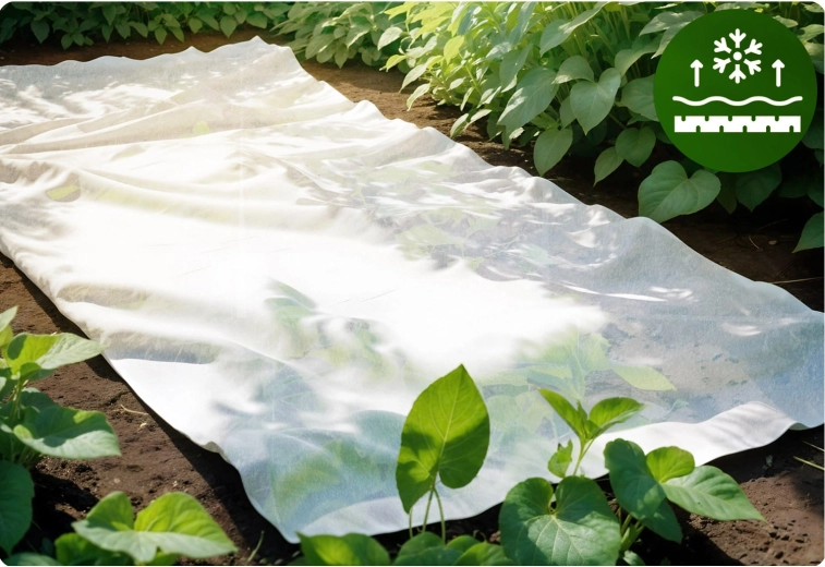 Az 50 g/m² grammsúlyú réteg hőszigetelést biztosít, amely megtartja a meleget, és megóvja az ültetvényeket a fagyoktól -5 °C-ig, valamint a széllökésektől.