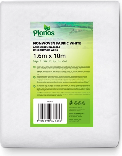A tartós PLONOS takaró agrotextil 160 × 1000 cm méretben és 50 g/m² grammsúllyal megvédi a növényeket a fagyoktól -5 °C-ig, a szelektől, a jégesőtől és az UV-sugárzástól. A légáteresztő PP anyag hőszigetelő réteget képez, megtartja a meleget és stabil körülményeket biztosít a biztonságos átteleléshez és a tavaszi induláshoz.