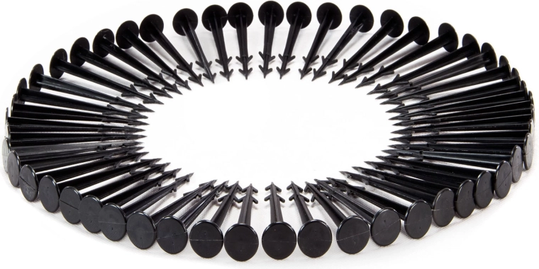 A csomag 100 db műanyag cöveket tartalmaz kampós heggyel és széles fejjel a textília gyors és stabil fixálásához még egyenetlen felületen is.