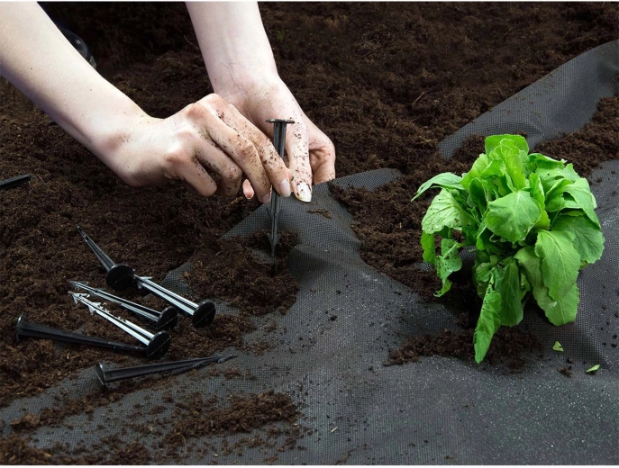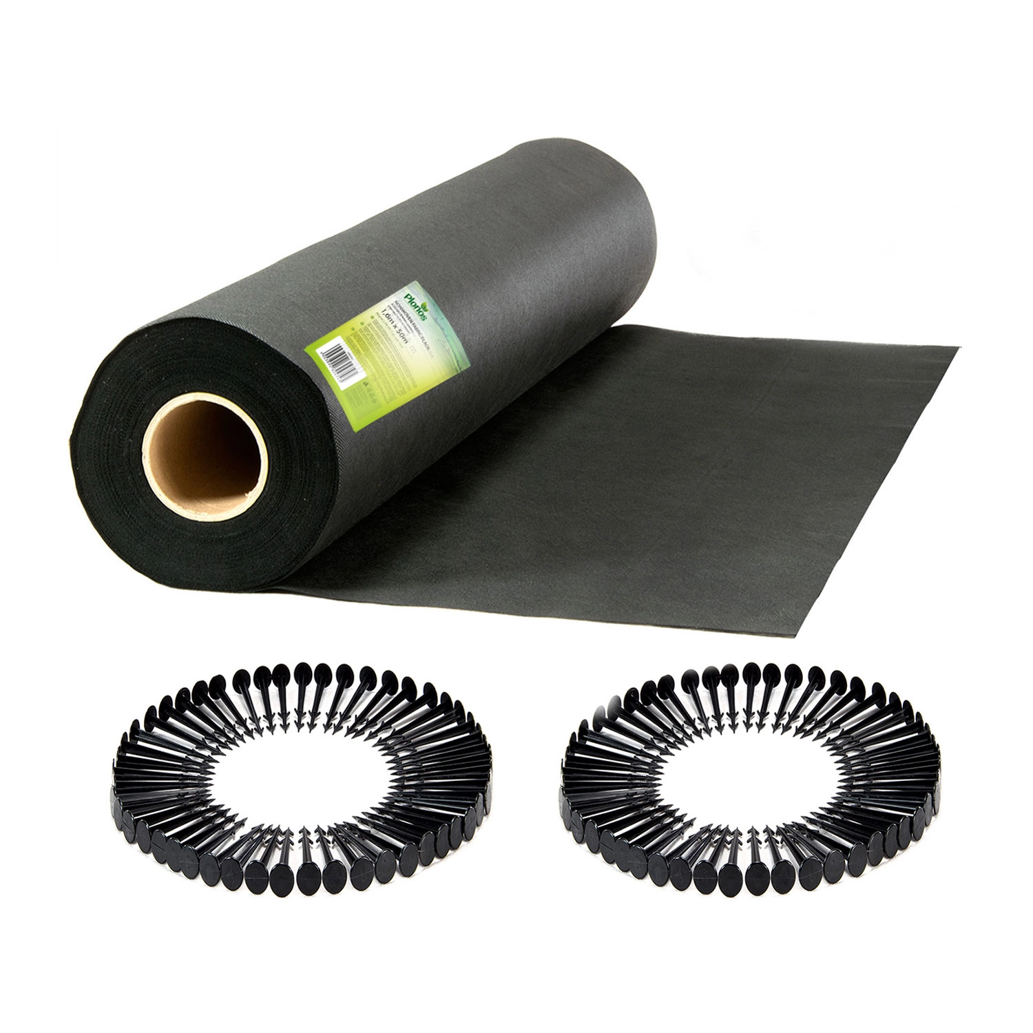 A textília erős polipropilénből készül, így a megterhelőbb körülményeket is bírja. A csomagban 100 rögzítő cövek is található, amelyek megkönnyítik a telepítést és biztosítják, hogy a textília pontosan a helyén maradjon. Ideális zöldség- és virágágyásokhoz, sziklakertbe, mulcs, kéreg vagy dekoratív kövek alá.