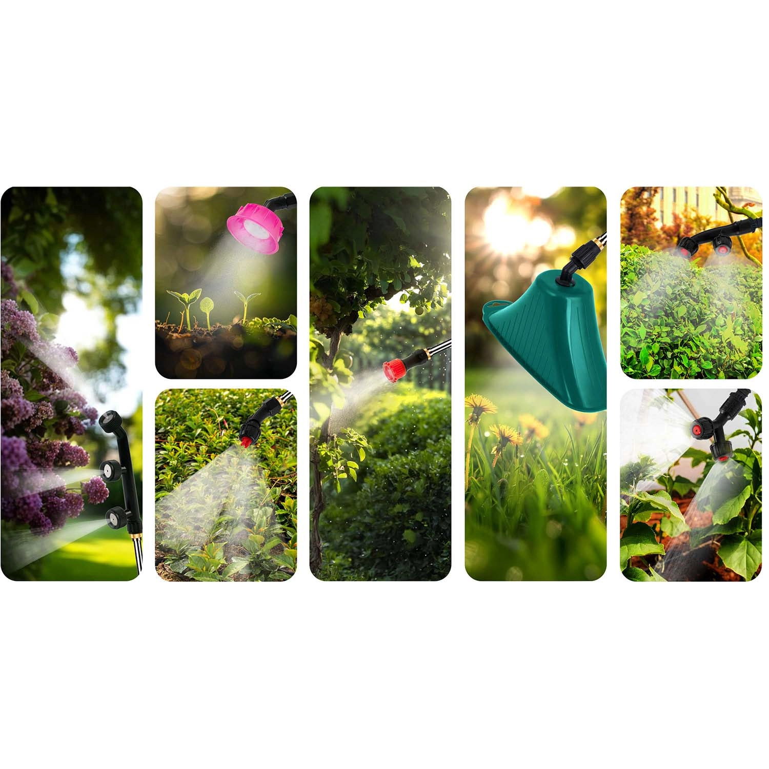 A finom ködtől az irányított sugárig – a 8 fúvókából álló készlet, beleértve a lapos, dupla és átfolyásszabályzós fejeket, pontos lefedettséget nyújt. A négyszórófejes keret egyszerre akár 108,5 cm szélességben permetez.