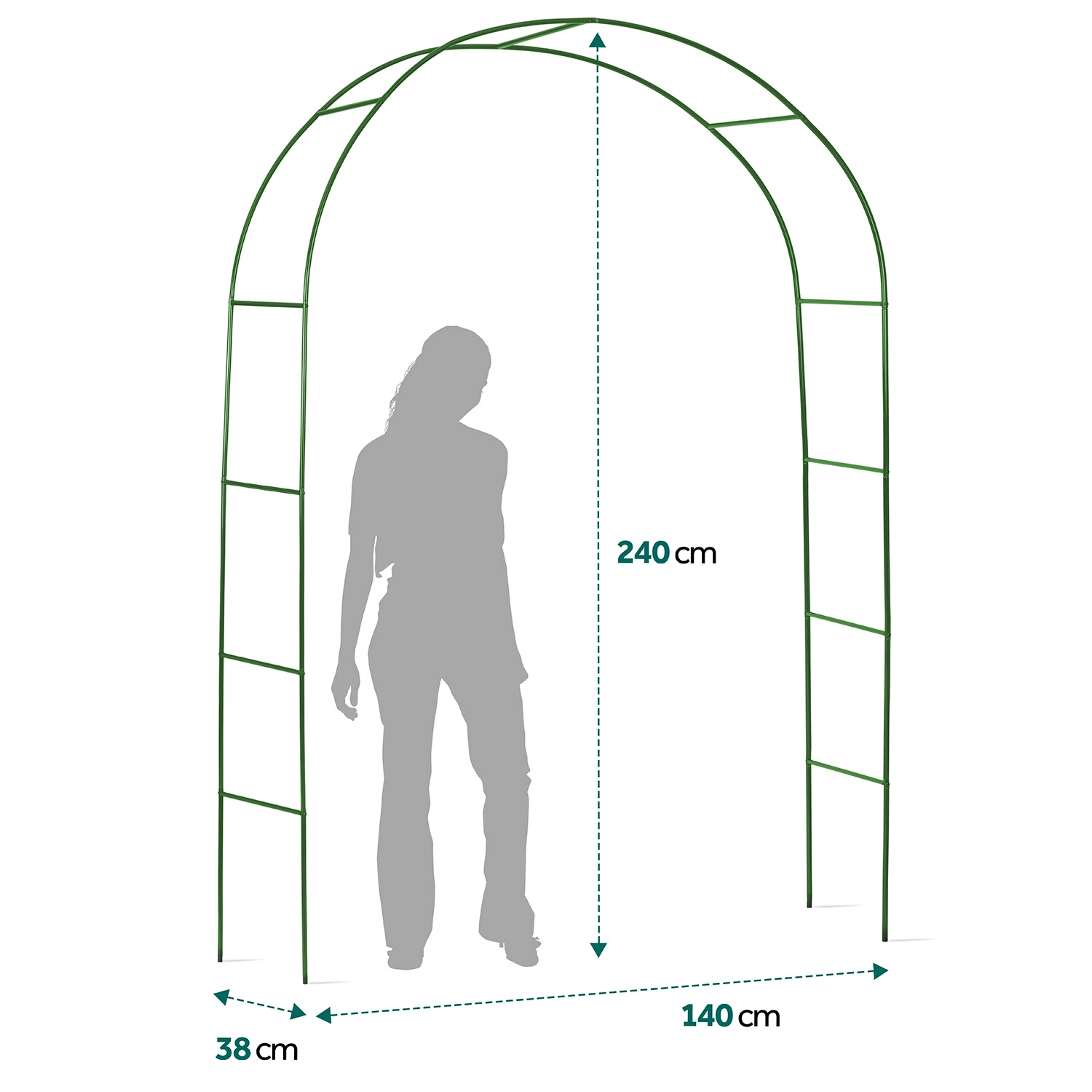 Kerti íves pergola 240 cm – sötétzöld, porszórt acél