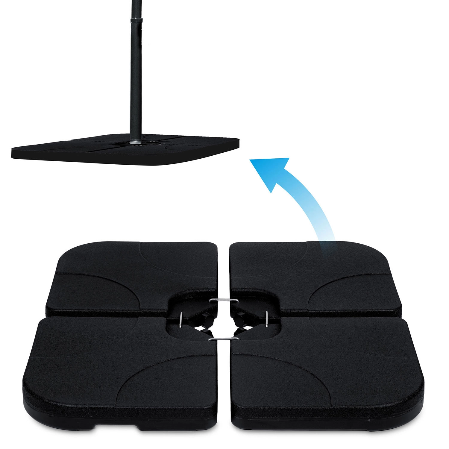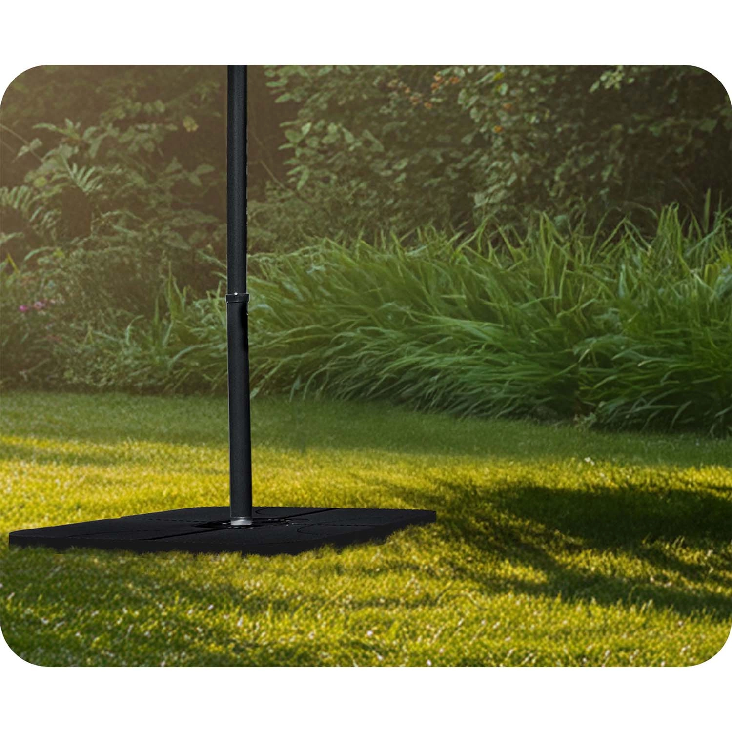 Négy négyzet alakú szegmens öleli körbe a kereszt talpat, így stabil terhelést hoz létre, amely megakadályozza a napernyő felborulását még szélben is.