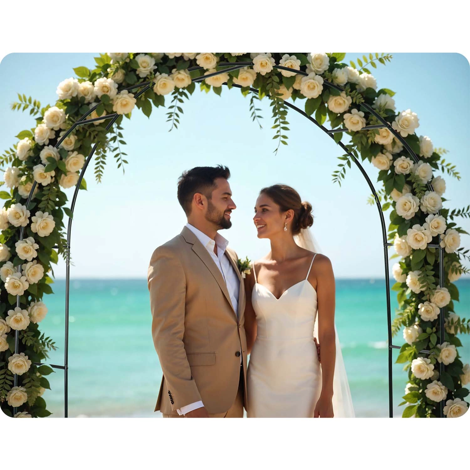 A csomagban biztonságos rögzítéshez szükséges horgonyok és szerelőcsavarok találhatók. Az intuitív összeállítás gyorsan, speciális szerszámok nélkül elvégezhető – így hamar létrehozhat látványos átjárót vagy romantikus fotóháttért esküvőkre és ünnepségekre.