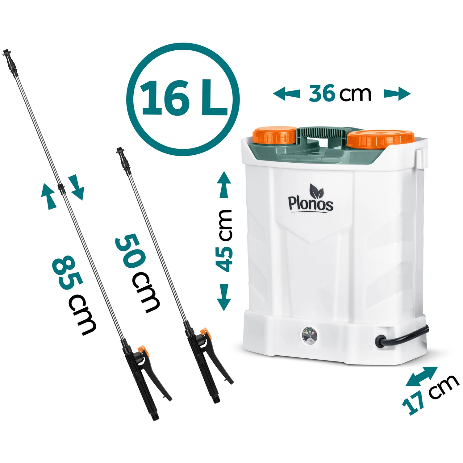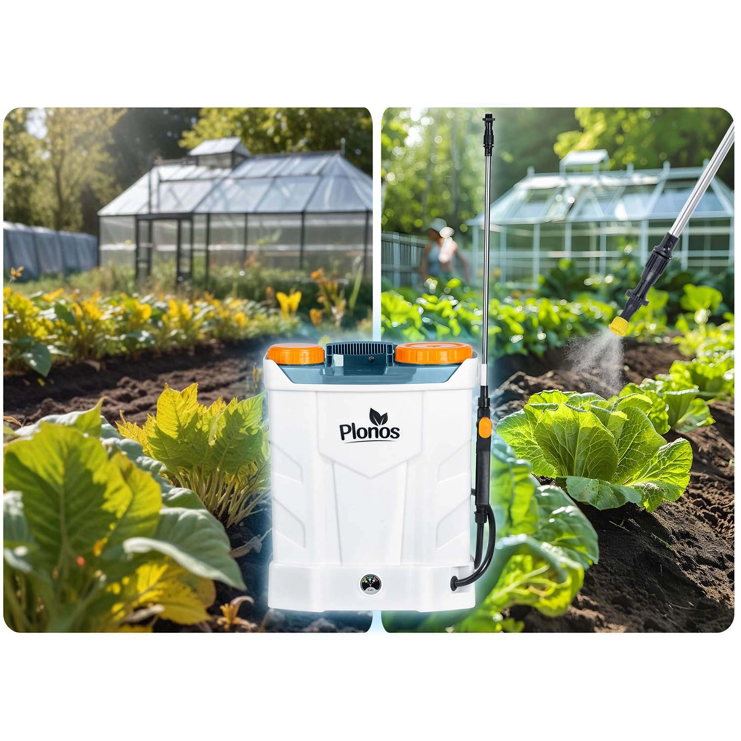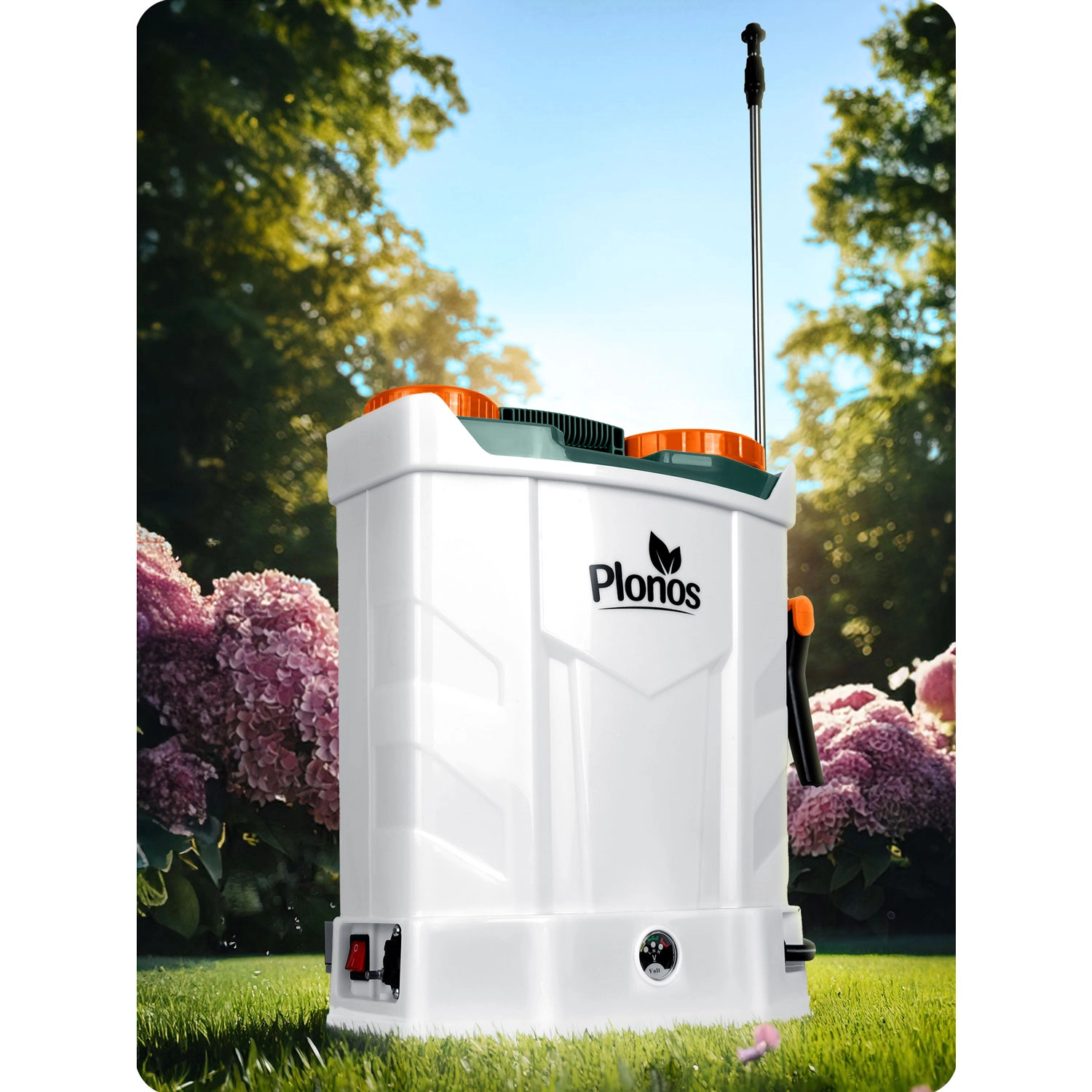 A PLONOS PL-602 akkumulátoros permetező ideális választás a növények hatékony védelméhez kártevők és betegségek ellen, valamint a rendszeres öntözéshez. A nagy, 16 literes tartály, a halk működés és a nagy teljesítményű 12 V / 8 Ah akkumulátor biztosítja a permetek folyamatos és egyenletes kijuttatását akár 3–4 órán át. A vegyszerálló PE anyagból készült robusztus ház és a CE tanúsítás hosszú élettartamot és biztonságos használatot garantál.