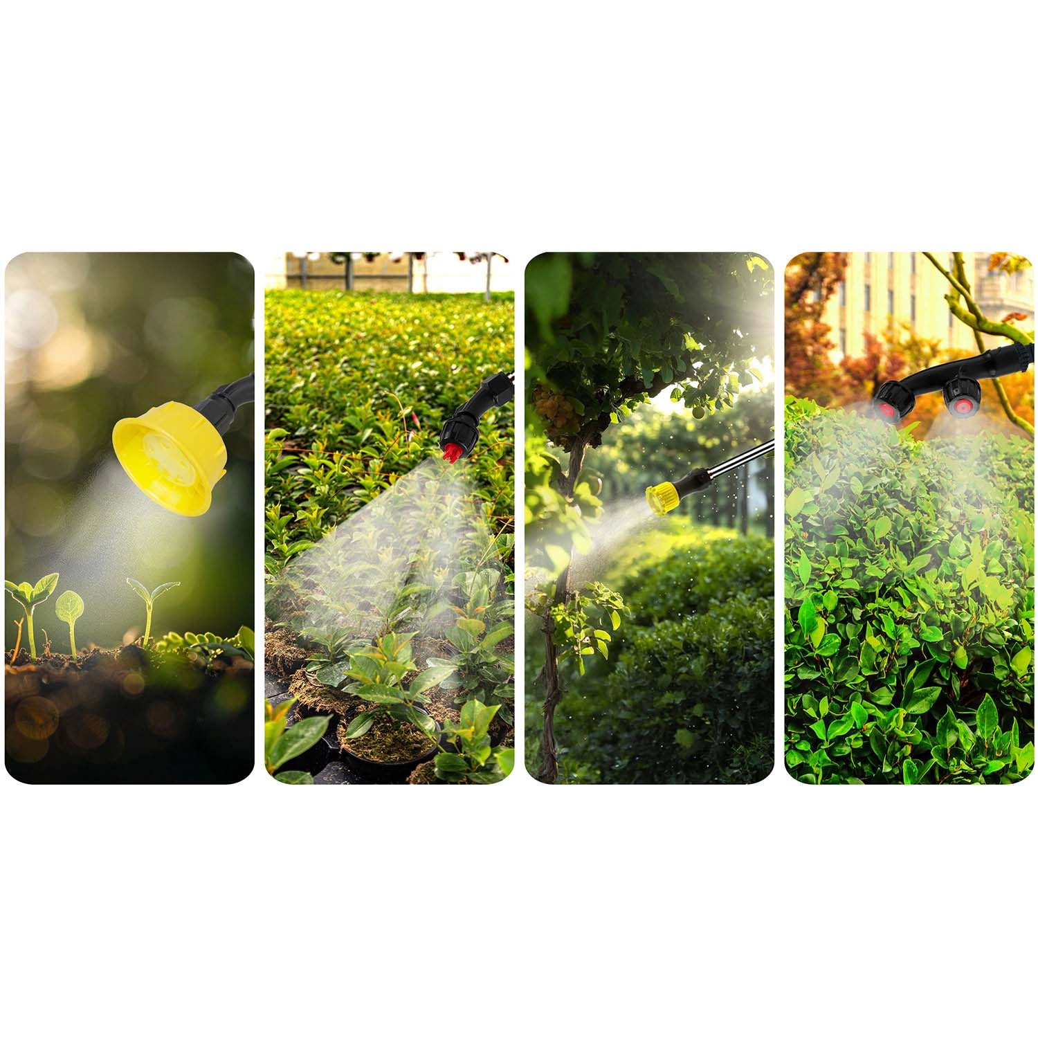 Válassza ki az ideális permetezési módot: finom köd az érzékeny növényekhez, lapos sugár a precíz munkához, négylyukú állítható fúvóka univerzális használatra, vagy dupla fej a szélesebb ágyások gyors lefedéséhez.