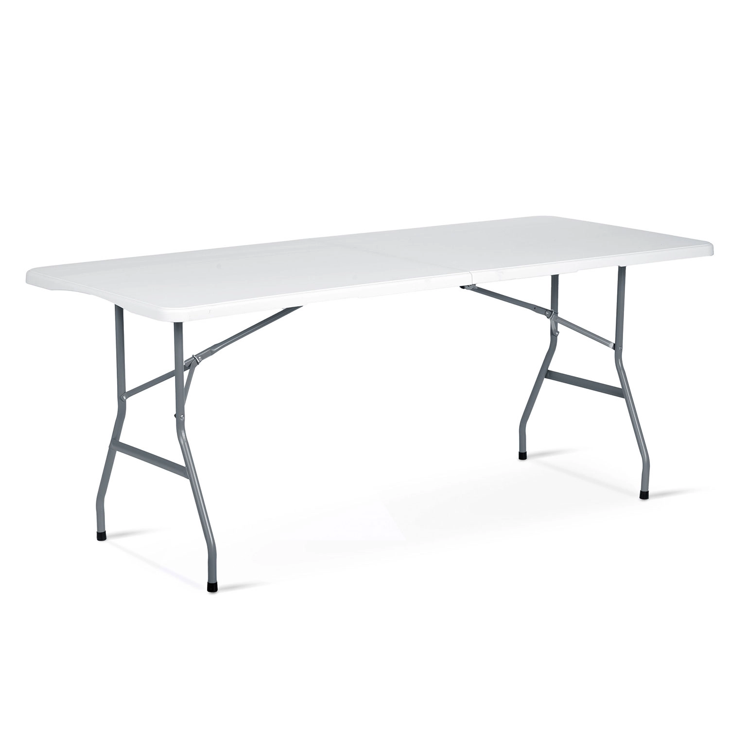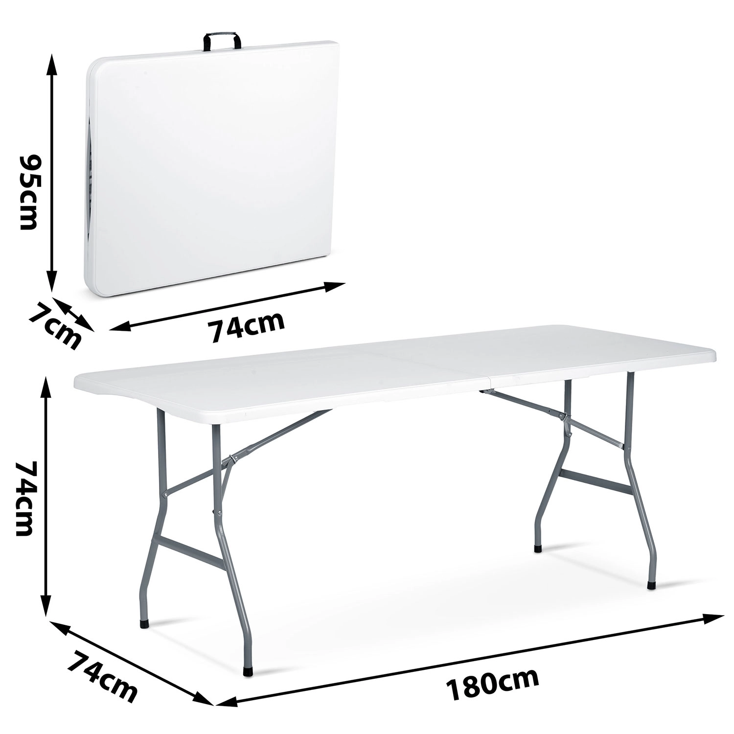 A megbízható, 180 cm-es összecsukható asztal kiváló választás kertbe, teraszra és beltérbe is. A porszórt bevonatú, masszív acél váz stabilitást és hosszú élettartamot garantál, míg a PE műanyag lap víz-, UV- és foltálló. Az összecsukható kialakításnak köszönhetően pillanatok alatt felállítható, majd a rendezvény után könnyen eltehető.