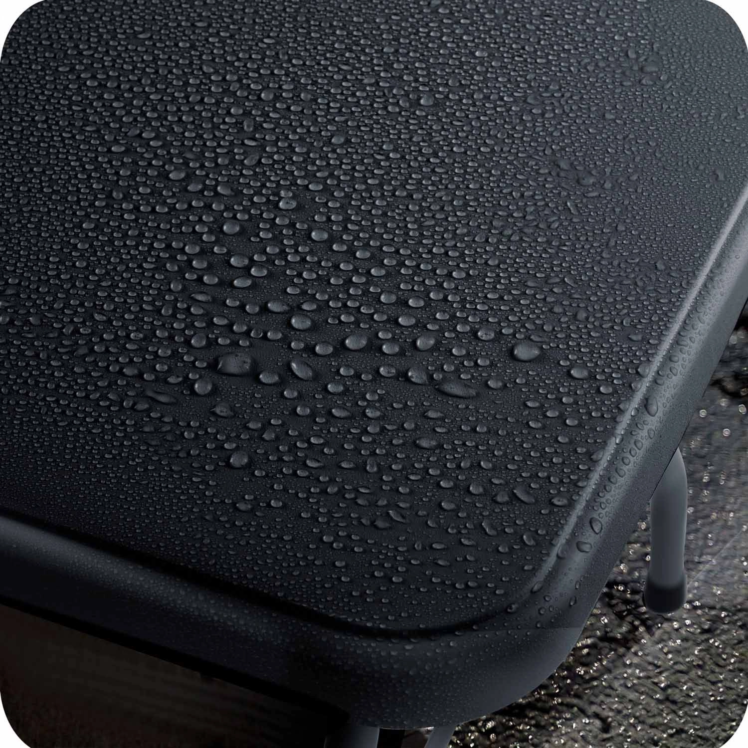 - Első a tartósság: víz-, UV- és kopásálló PE lap, porszórt acéllábak.