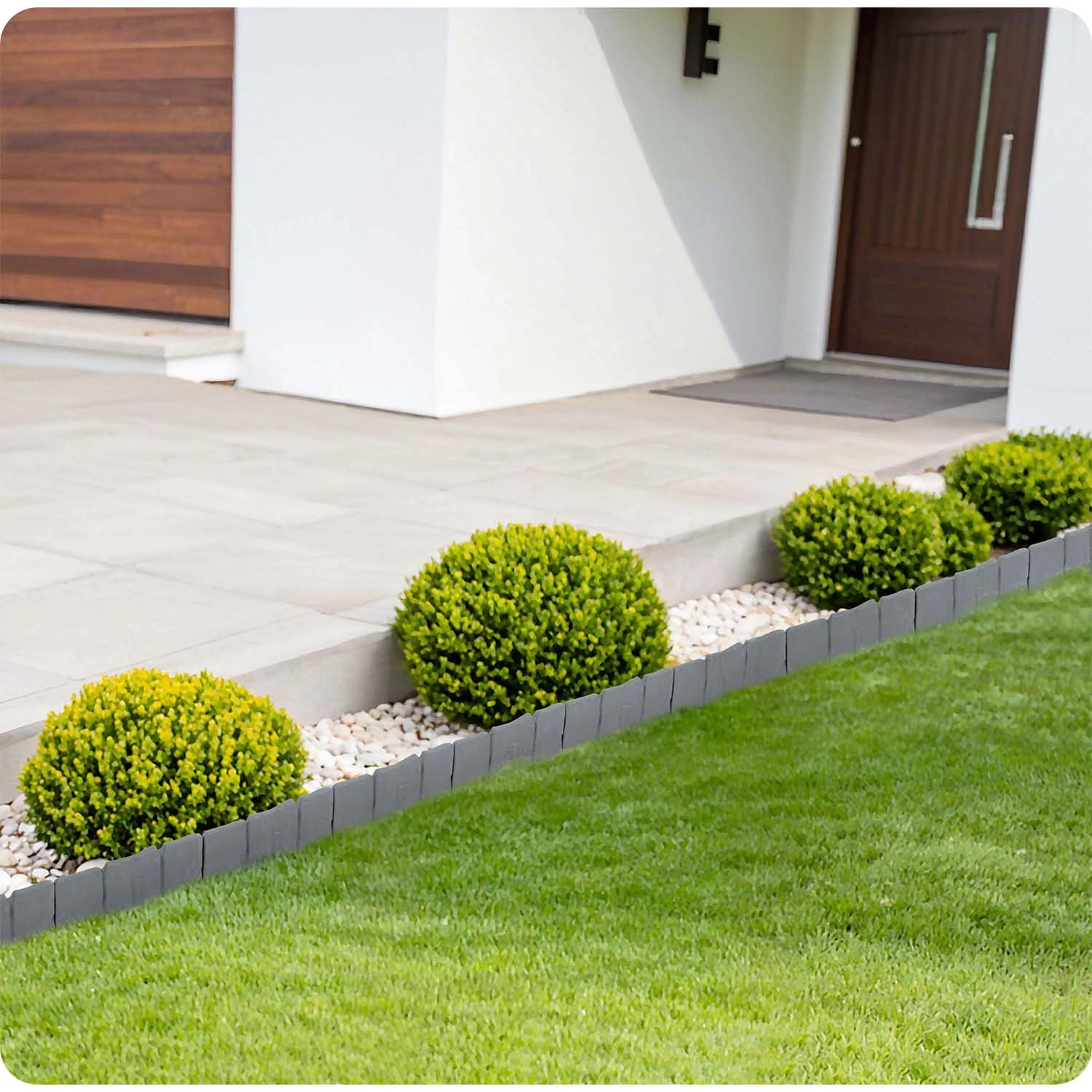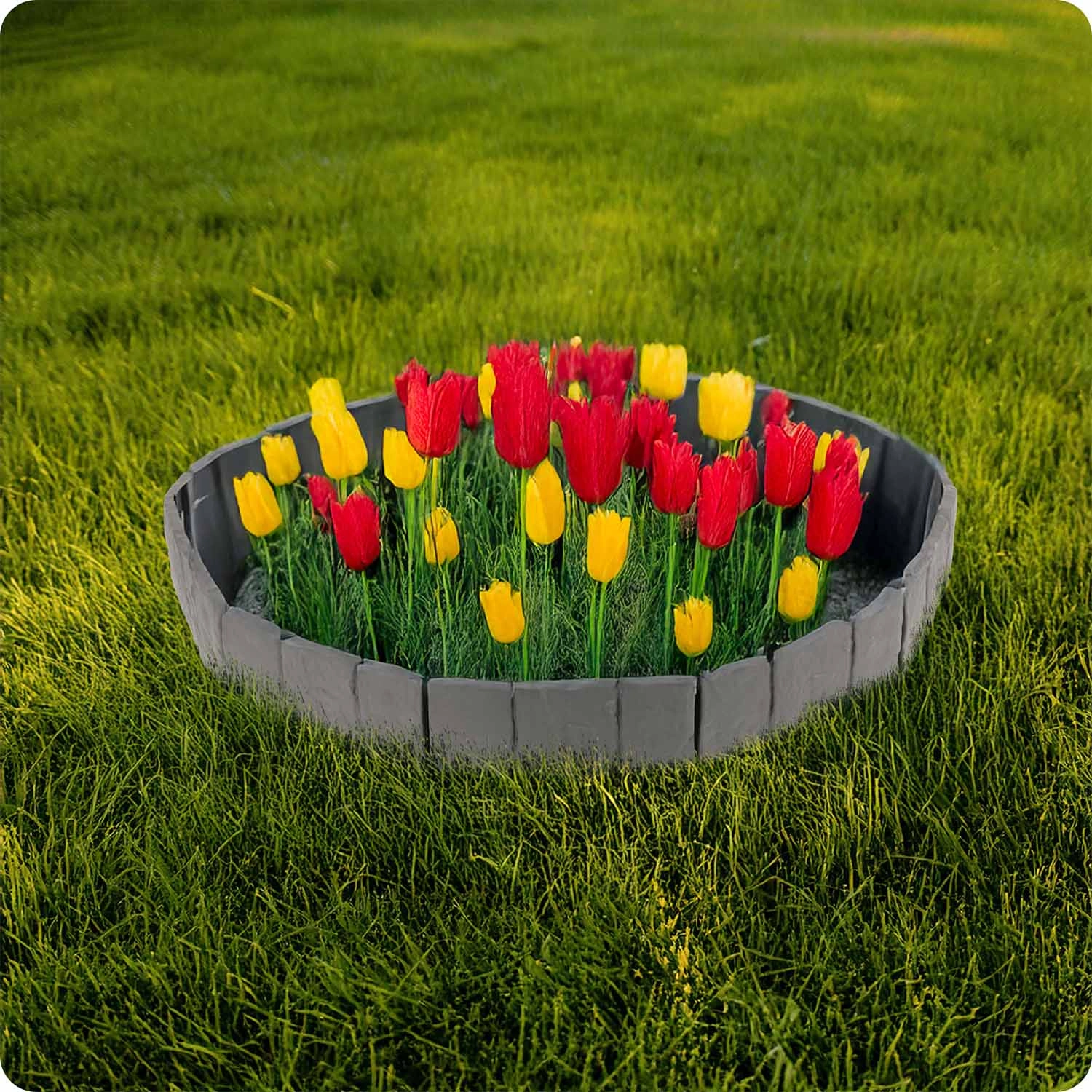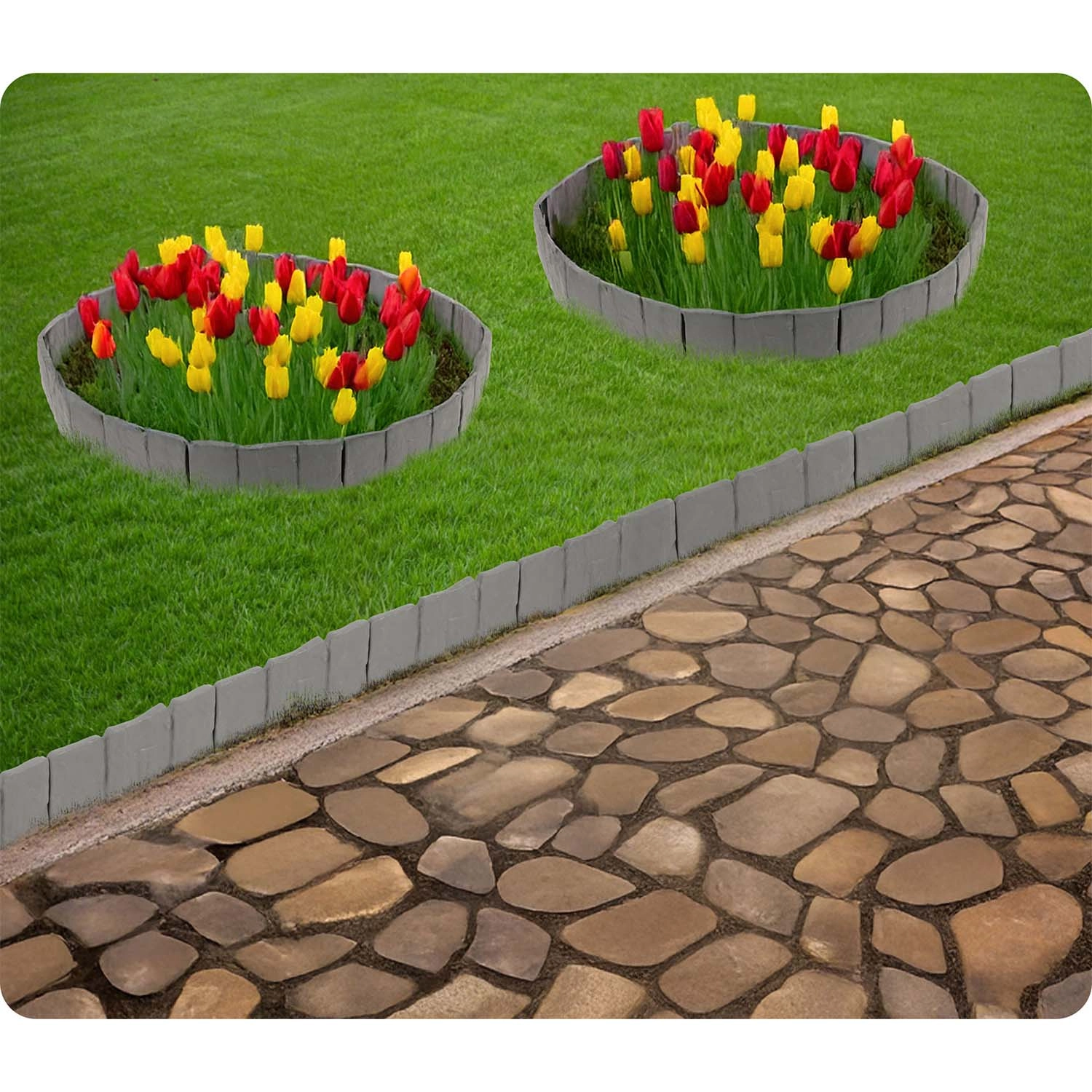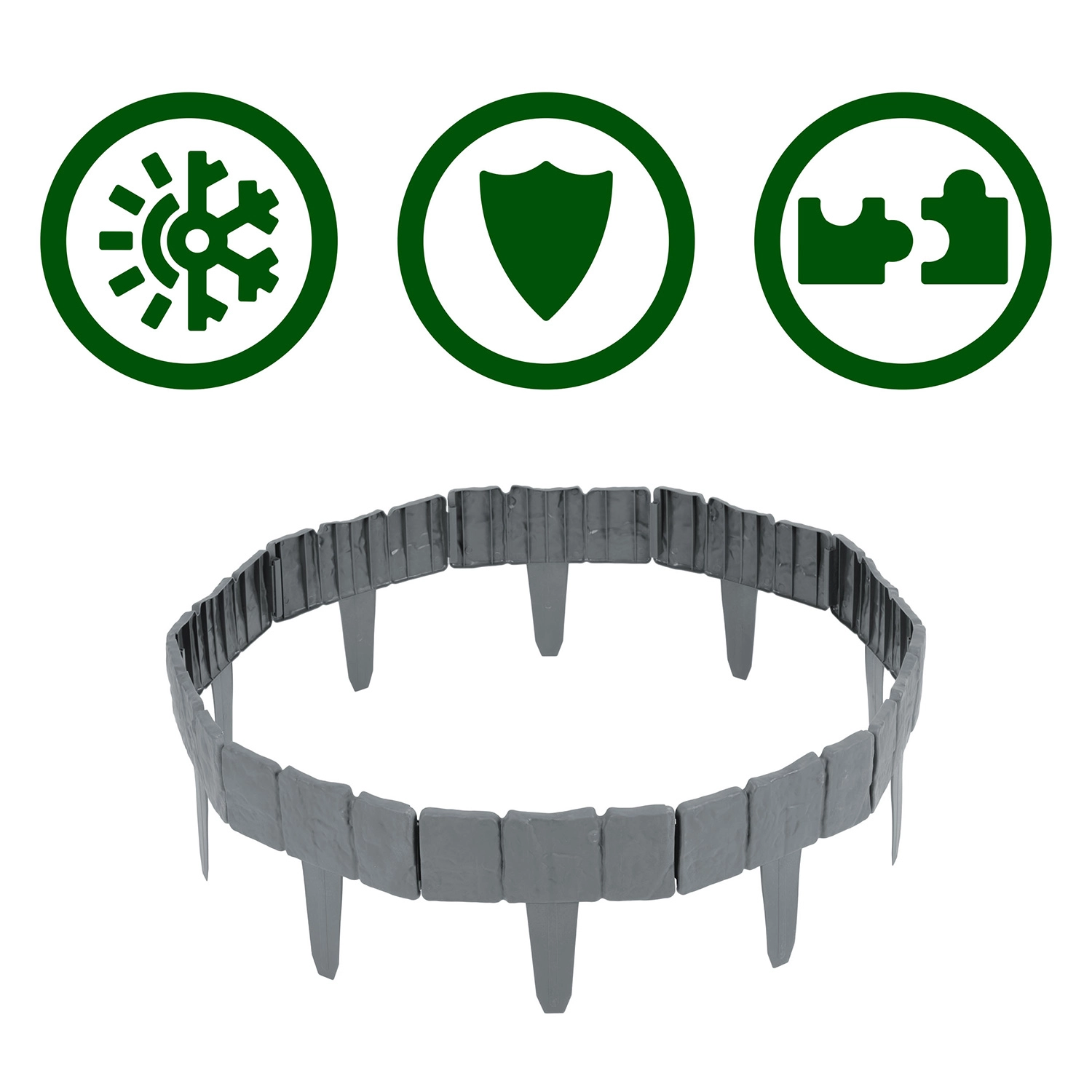 Az összekapcsolható kialakítás egyenes vonalakhoz és ívekhez egyaránt igazodik. Ideális fák, virágágyások vagy járdák szegélyezéséhez.