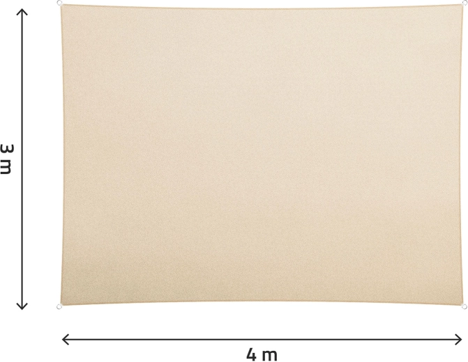 Praktikus és stílusos árnyékoló ponyva 12 m² felülettel, amely pontosan ott nyújt kényelmes árnyékot, ahol szüksége van rá. A strapabíró polietilén szövet (180 g/m²) véd a nap ellen és az enyhe esőtől is – a cseppek szabadon lefolynak a felületen, így egy zápor idején is élvezheti a kinti pihenést.