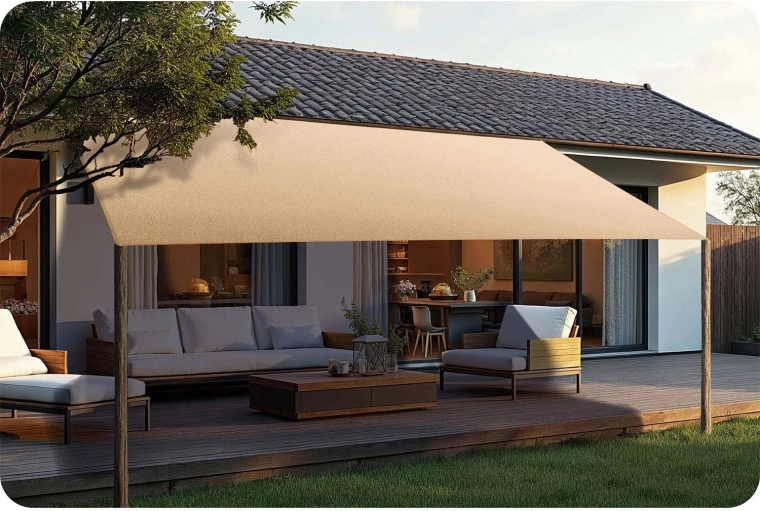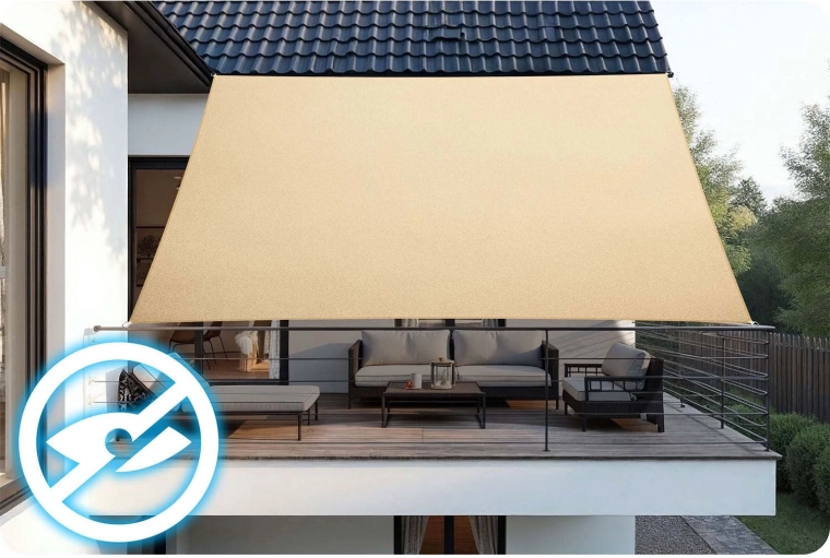 A teljes kerületen megerősített szegés és a sarkoknál található fém szemek/D-gyűrűk révén a ponyva megbízhatóan kifeszíthető falak, oszlopok vagy fák között. A telepítés gyors, a tárolás egyszerű, a semleges bézs szín pedig a legtöbb kültéri környezethez illik.