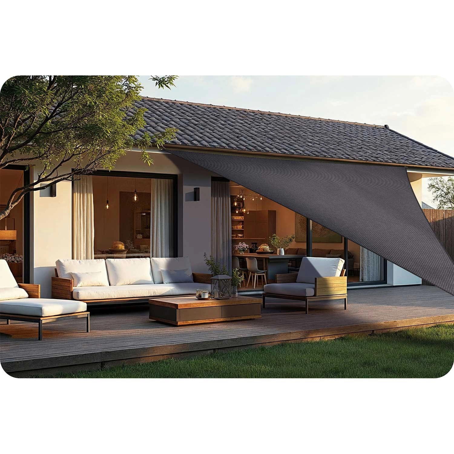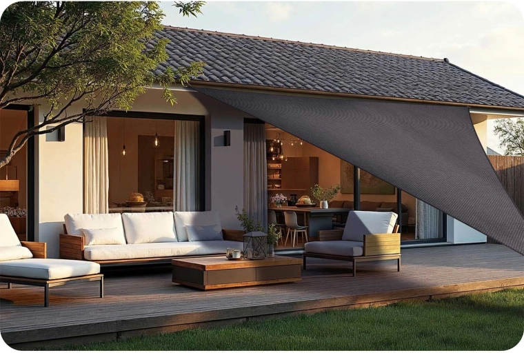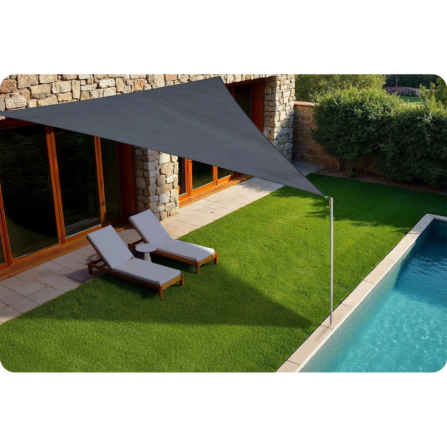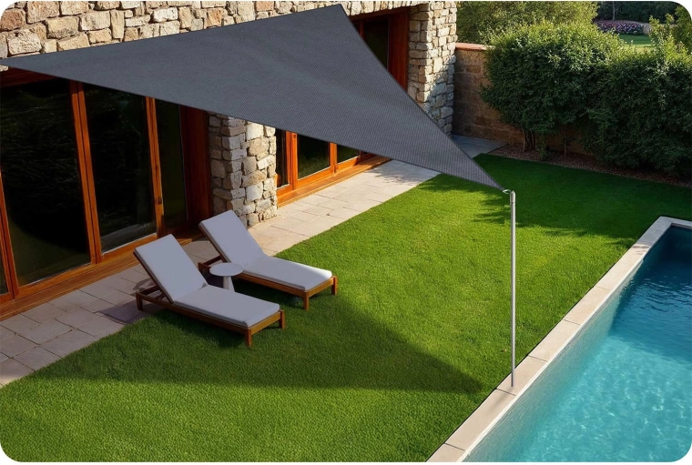 A 400 × 400 × 400 cm-es háromszög akár 7 m² árnyékot biztosít, modern megjelenést és kényelmet adva a kültéri pihenőnek.