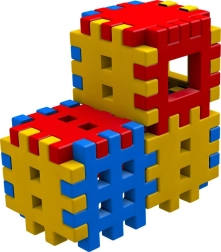 A fogazott élek és rácsos felületek szilárd elemkapcsolatot tesznek lehetővé, valamint egyszerű 3D formák, kockák és tornyok építését.