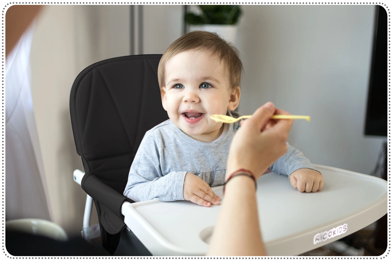 A RICOKIDS Nuco etetőszék ötvözi a modern, minimalista dizájnt és a funkcionalitást a mindennapi etetéshez. A tálca megemelt peremei és a külön pohárhely csökkentik a kifröccsenést, míg a párnázott, steppelt huzat maximális kényelmet nyújt. Az anyagok könnyen tisztíthatók – a tálca levehető és folyó víz alatt leöblíthető, a huzat pedig egyszerűen letörölhető.