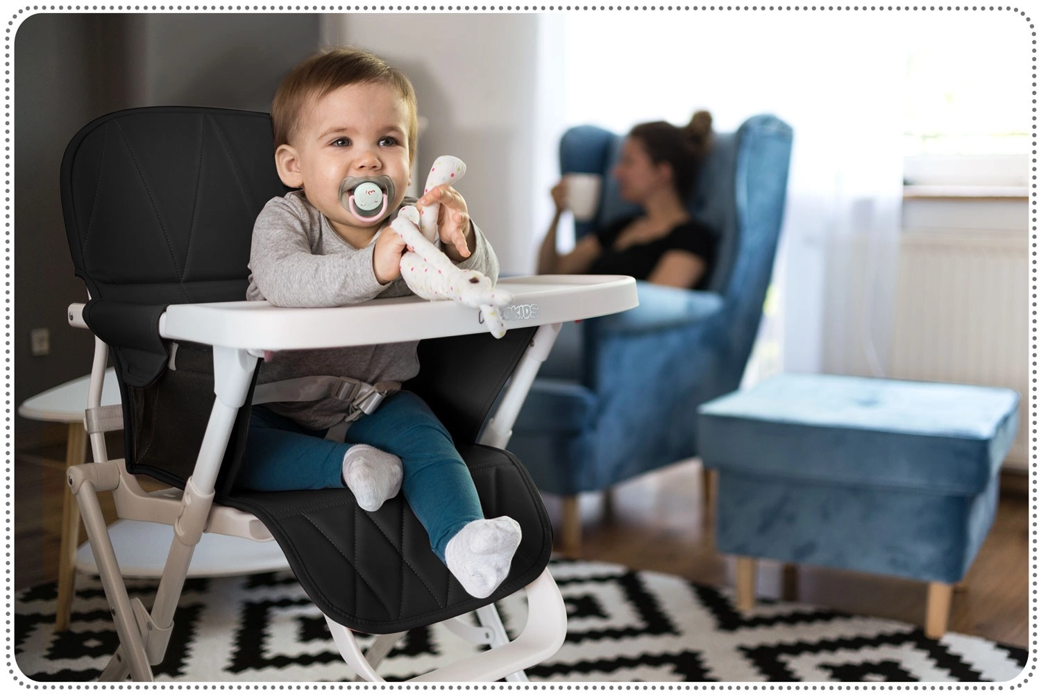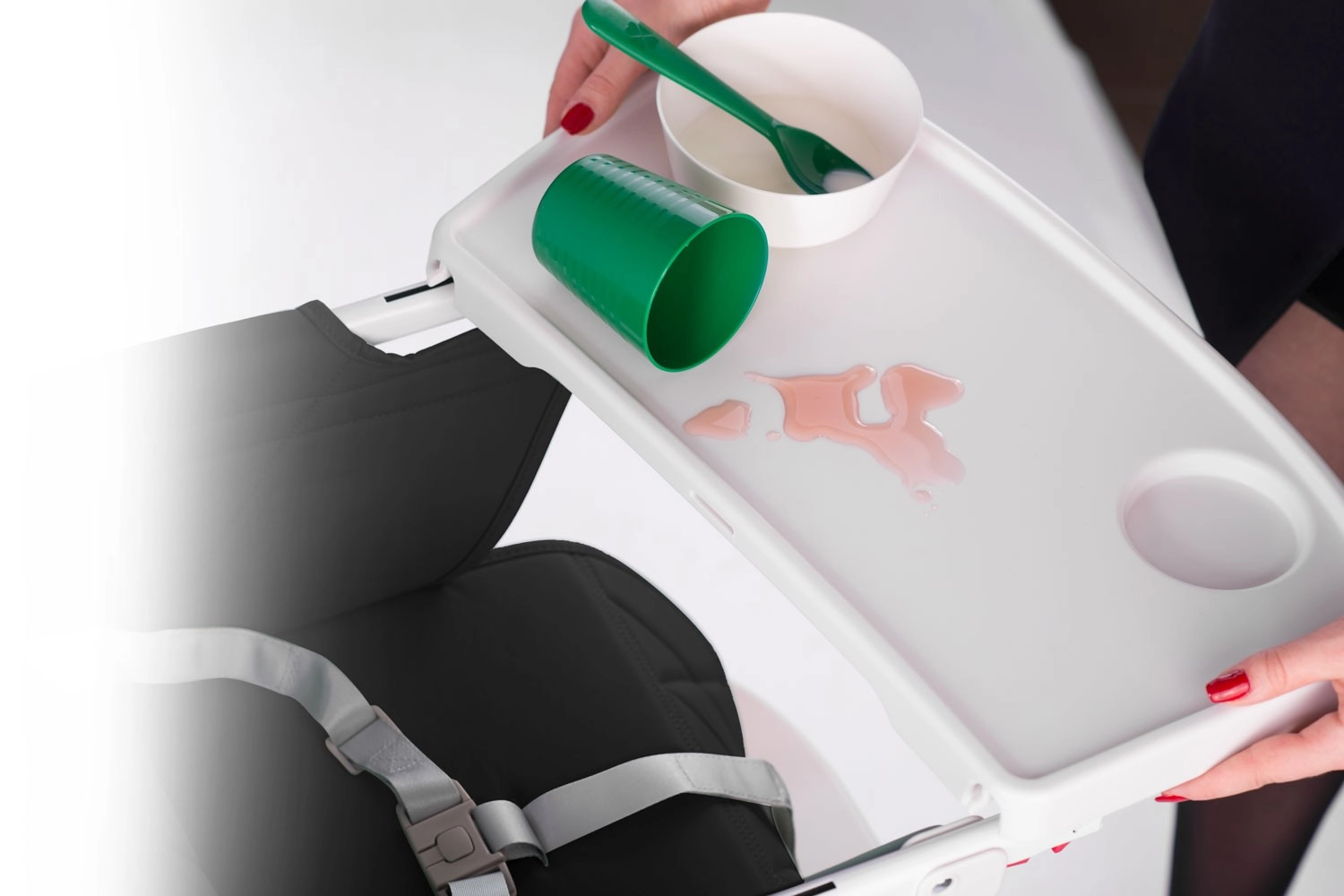 A puha párnázás, az ergonomikus lábtartó és a 3 pontos biztonsági öv gondoskodik róla, hogy gyermeke minden étkezésnél kényelmesen és biztonságban üljön.