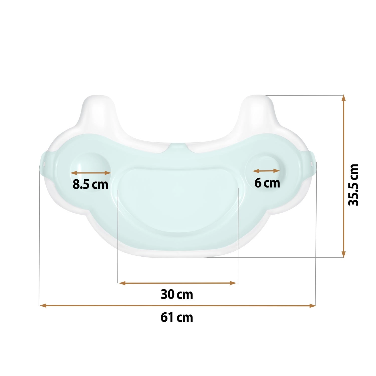 Az átgondolt ergonómia elegendő helyet biztosít ételeknek és italoknak, míg a tartós anyag bírja a mindennapos használatot. A tálcát nemcsak etetéshez, hanem játékhoz és alkotáshoz is használhatja.