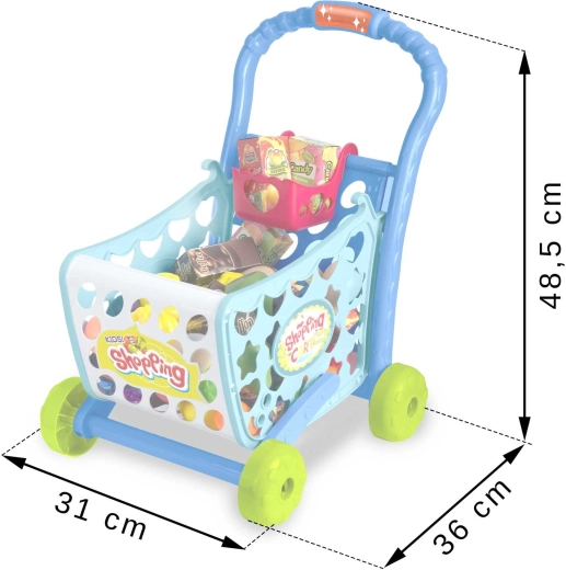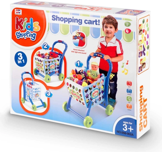 Színes RICOKIDS 3 az 1-ben gyerek bevásárlókocsi könnyű, tágas és remekül kézre áll. A háromféle összeállításnak köszönhetően bevásárlókocsi és tologatós járássegítő is lehet. Tartozik hozzá gazdag kiegészítő készlet (gyümölcsök, zöldségek, dobozok, bankjegyek) és LED-fény hanggal a fogantyúban. Támogatja a finommotorikát és a szociális játékot, továbbá megfelel az európai EN biztonsági szabványoknak.