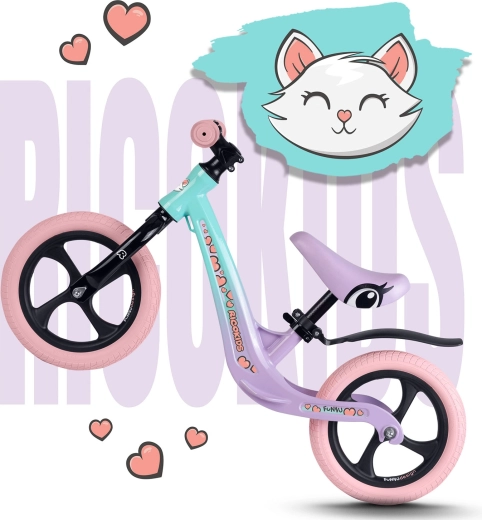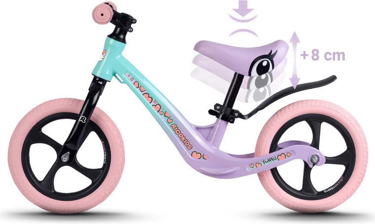 A Ricokids Funnu futóbicikli a modern dizájnt ötvözi a maximális funkcionalitással. A magnézium konstrukció masszív, ugyanakkor rendkívül könnyű, így a kezelése a gyerekeknek és a szülőknek is egyszerű. A belső nélküli 12'' EVA kerekek halkak, nem igényelnek karbantartást és nem lyukadnak ki – ideálisak aszfaltra, fűre és enyhe terepre.
