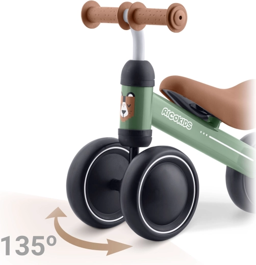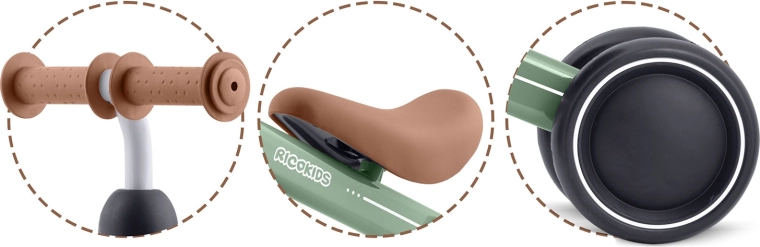 A Ricokids háromkerekű futóbicikli ideális választás első járműnek. A könnyű és tartós szerkezet segít fejleszteni a koordinációt és az egyensúlyérzéket, míg a nagyon alacsony ülés megkönnyíti a biztonságos elrugaszkodást és a teljes talppal történő megállást. Minimalista dizájnja és kompakt méretei lakásba és kültérre egyaránt passzolnak.