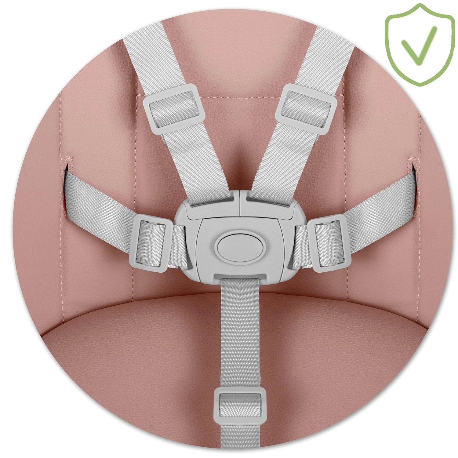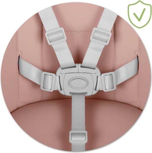 Az állítható, 5 pontos hevederek stabilan és kényelmesen rögzítik a gyermeket az ülésben. Megfelel az EN 14988 európai szabványnak a magas etetőszékekre vonatkozóan.