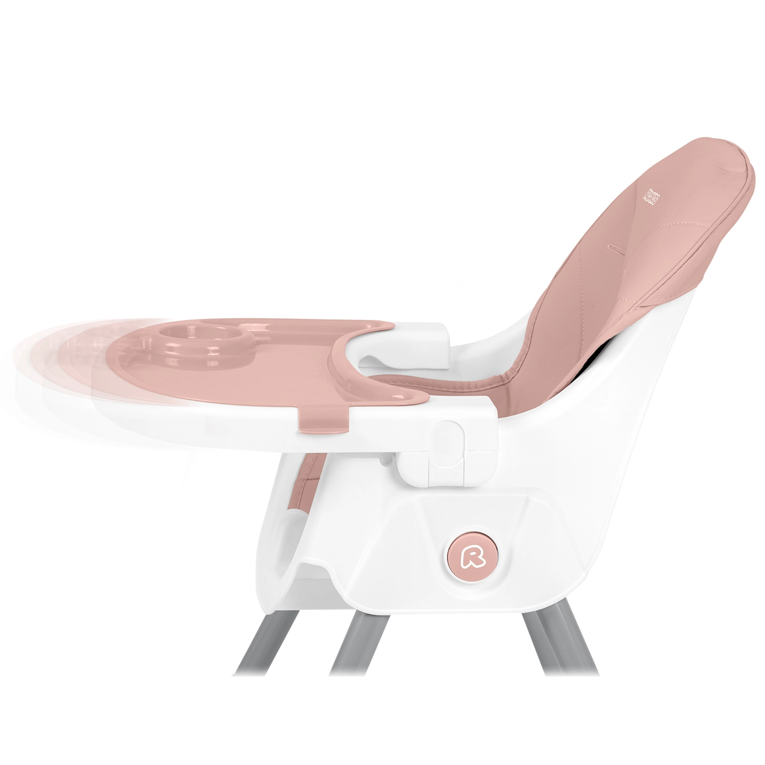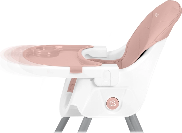 A tálca fokozatmentesen közelebb vagy távolabb csúsztatható a gyermek igényei szerint. A megemelt peremek és a pohártartó segítenek rendet tartani, a betét mosogatógépben mosható.