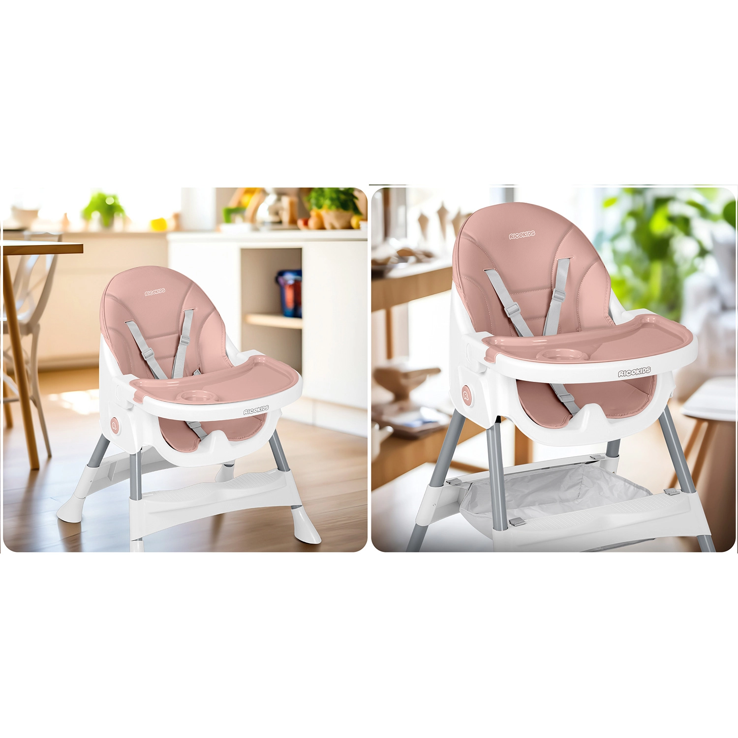 A Ricokids Mani sokoldalú 3 az 1-ben etetőszék, amely mindennapi használatra készült – az első pépektől az önálló étkezésen át az alkotáson és olvasáson keresztül. Az ergonomikus ülés és háttámla támogatja a helyes testtartást, és hosszabb ücsörgésnél is kényelmet biztosít.