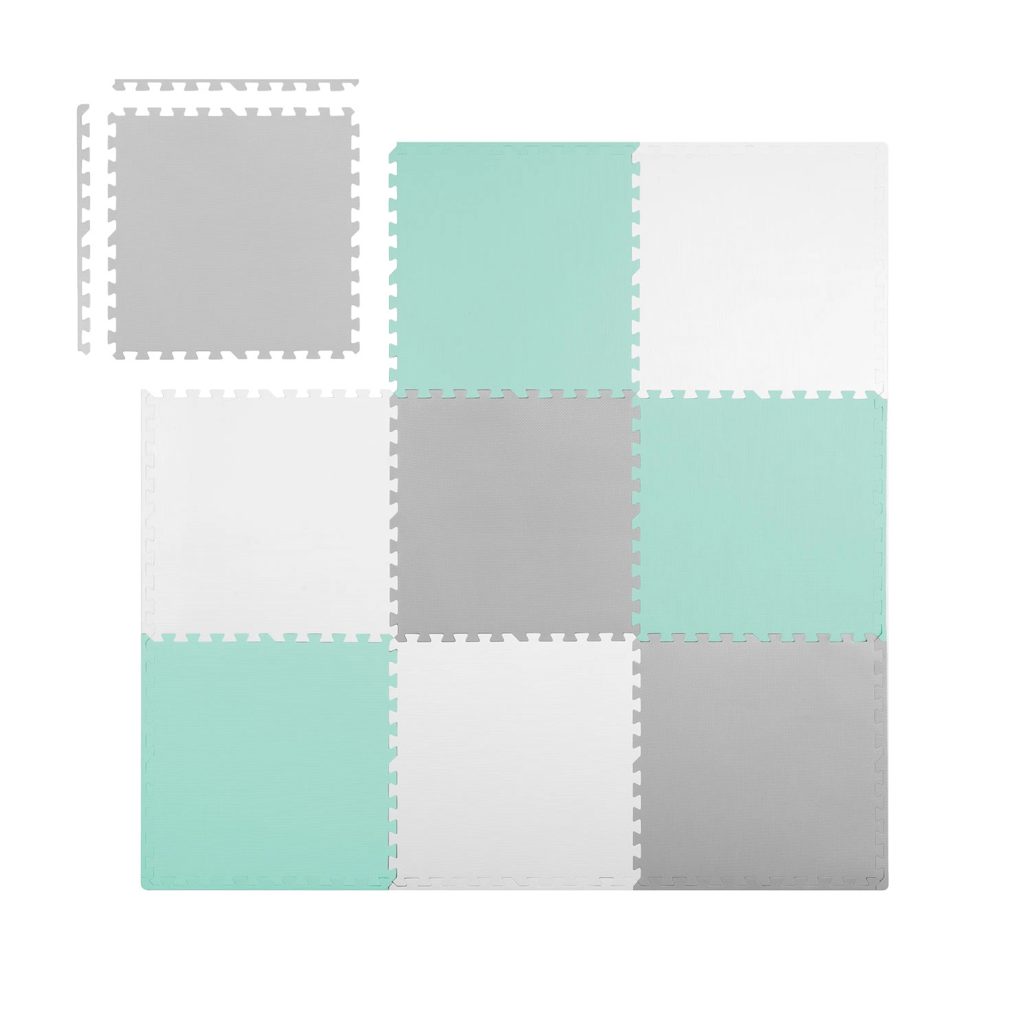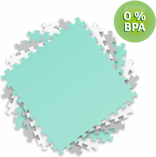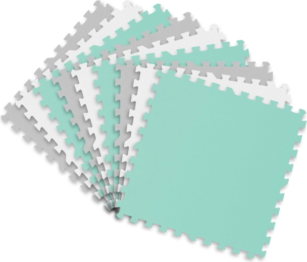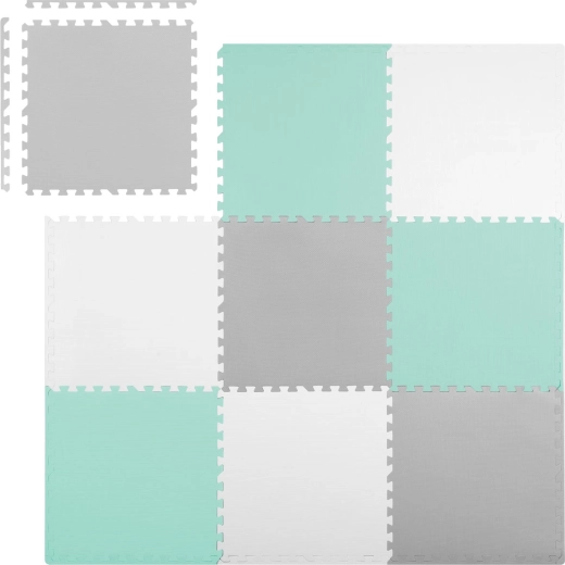 Praktikus és stílusos gyerek alátét minőségi EVA habból, 180 × 180 cm méretben (9 db 60 × 60 cm elem) a biztonságos játékhoz és az első mászáshoz. Puha ütéscsillapítás, csúszásmentes felület, hőszigetelés a hideg padlótól és vízállóság biztosítják a kényelmet és a könnyű tisztítást. Az elemek különböző formákká illeszthetők, és a semleges színeknek köszönhetően bármelyik enteriőrbe illenek.
