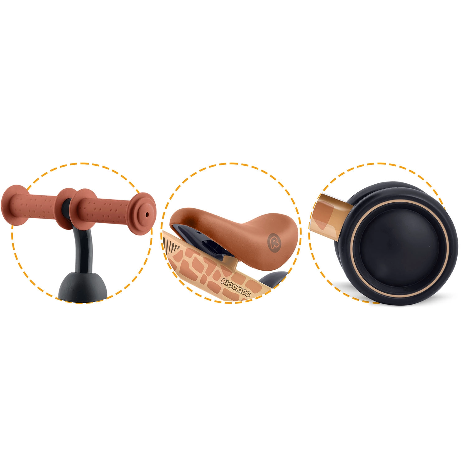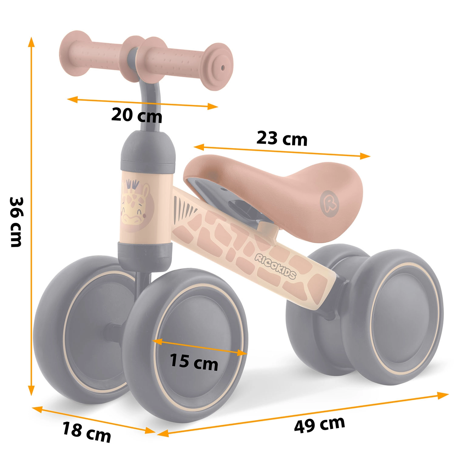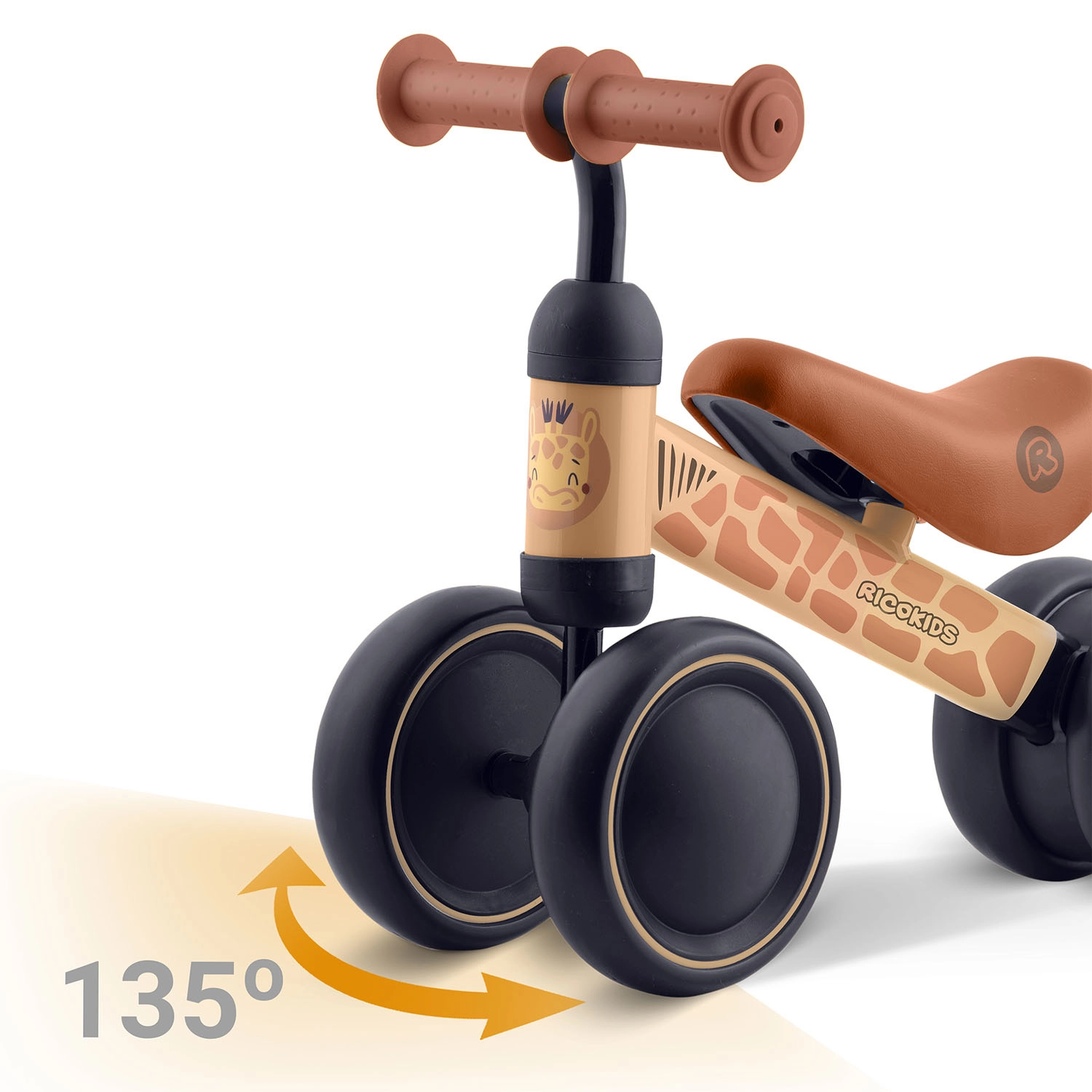 A RICOKIDS kisgyermek futóbicikli ideális választás az első önálló gurulásokhoz. Az alacsony ülésmagasságnak köszönhetően a gyerekek magabiztosak lehetnek, könnyen leér a lábuk, míg a széles, stabil kerekek biztonságosan segítik az egyensúly gyakorlását. A könnyű szerkezet lehetővé teszi, hogy a kicsik maguk is felemeljék és hordozzák a futóbiciklit.