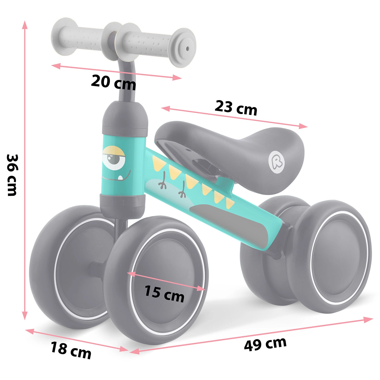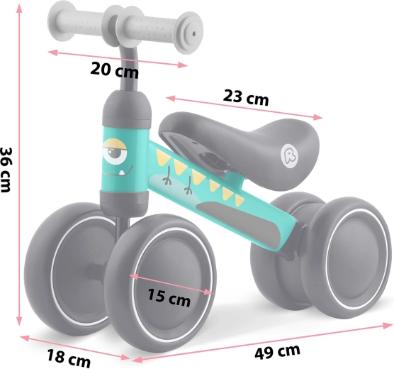 Négy/széles, tartós műanyagból készült kerék kiváló tapadást és stabilitást biztosít, így a kicsik biztonságosan tanulhatják az egyensúlyt már az első lépésektől.