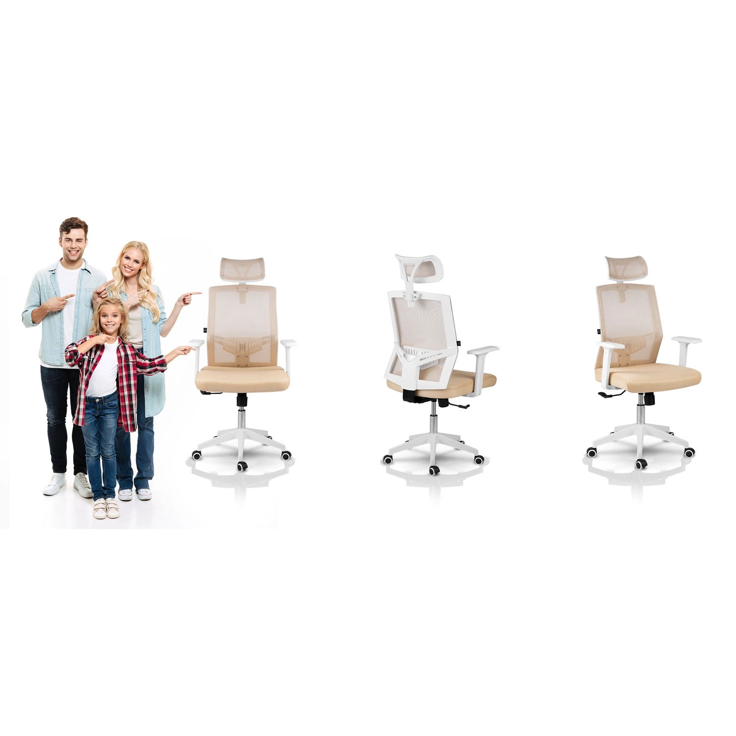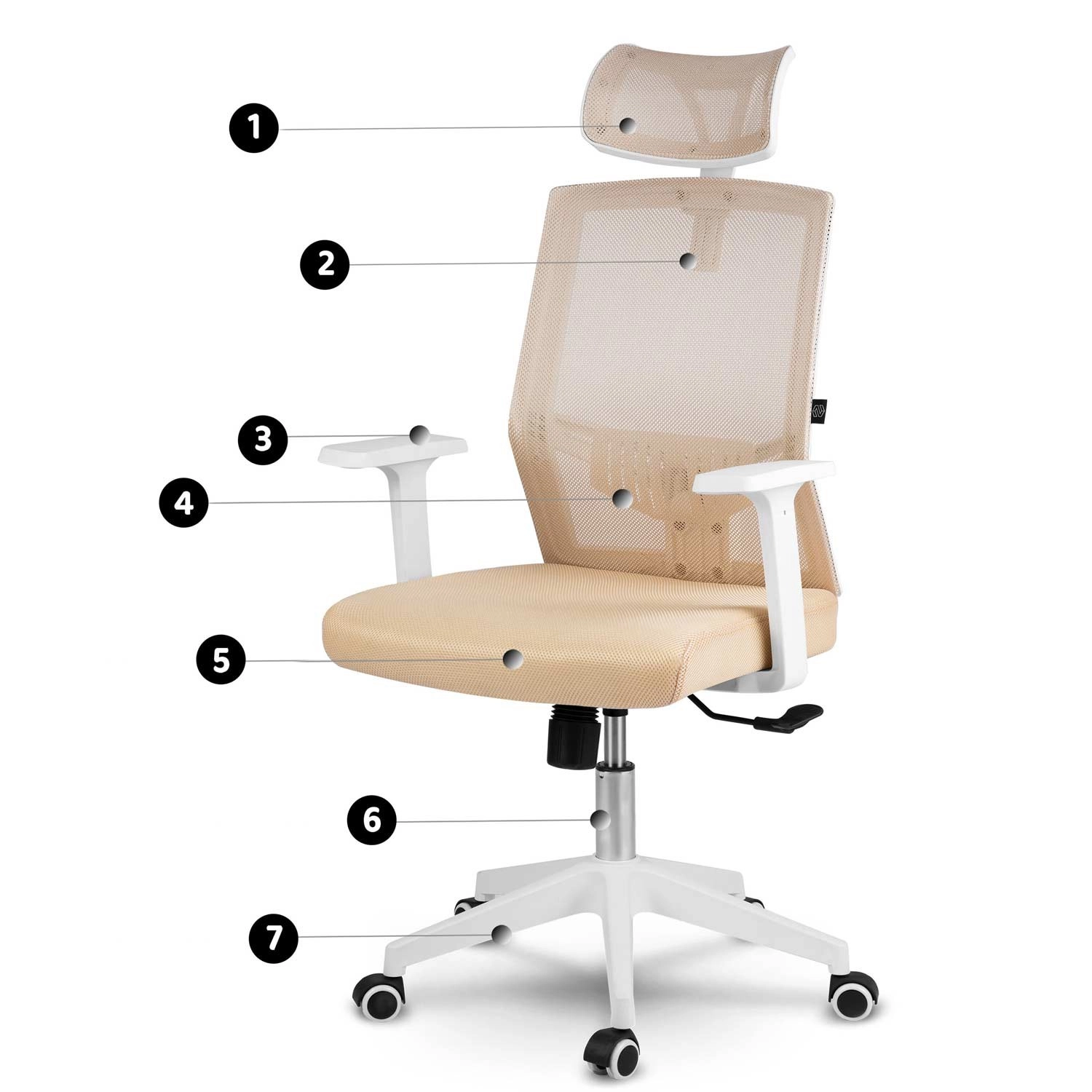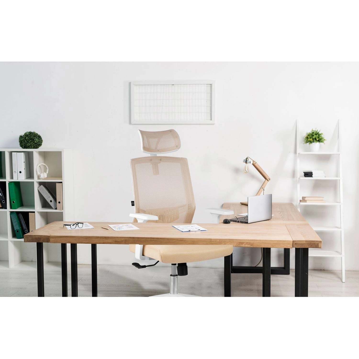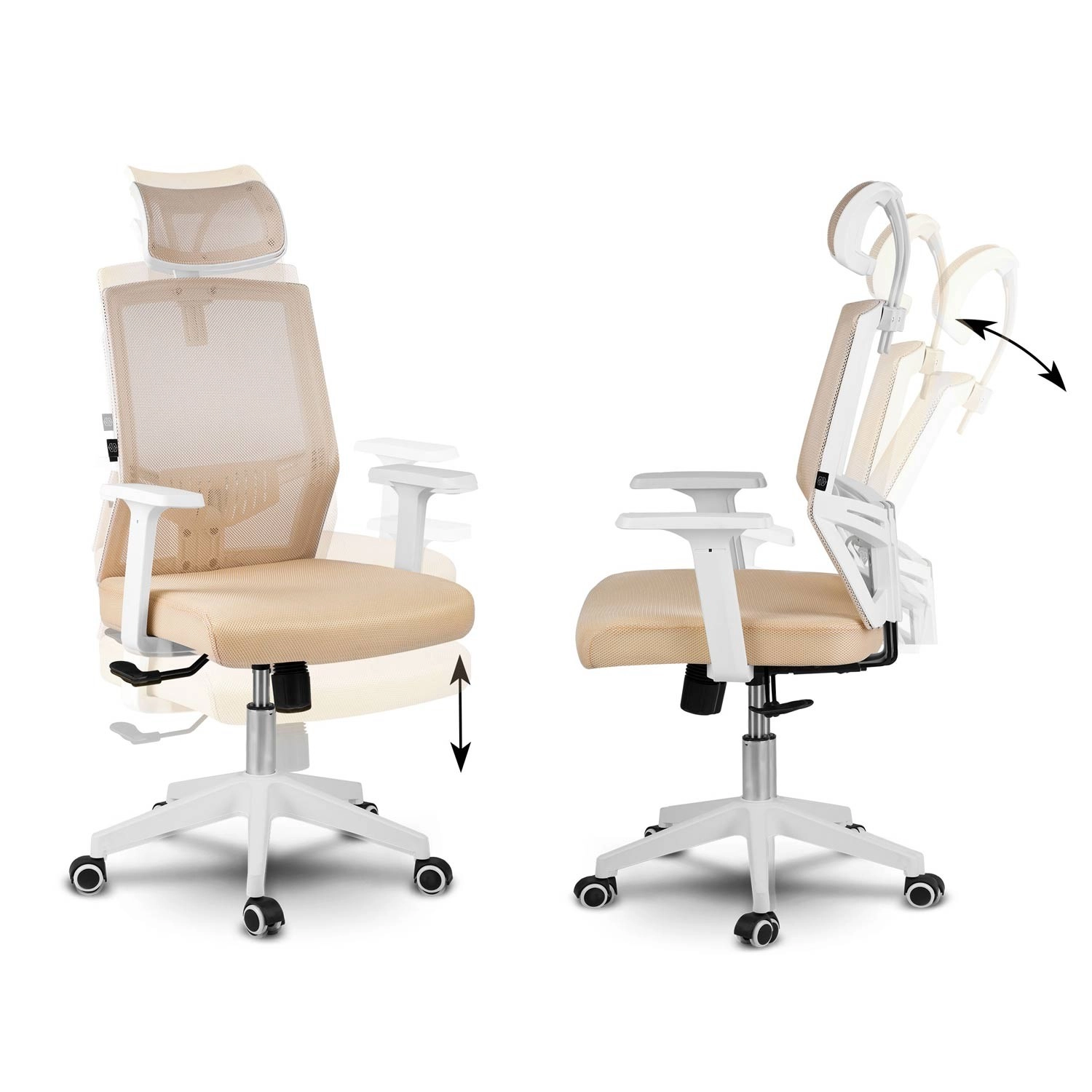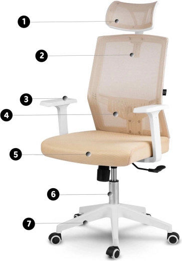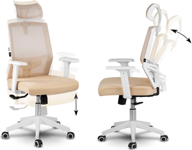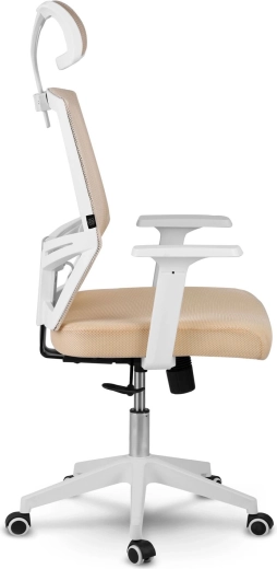 A bézs színű Sofotel Rotar irodai szék stílust és kényelmet ötvöz: légáteresztő mikroszövet, ergonomikus kialakítás deréktámasszal és állítható fejtámla. Fokozatmentes magasságállítás, rögzíthető hintamechanika és csendes, gumírozott kerekek, amelyek nem karcolják a padlót.