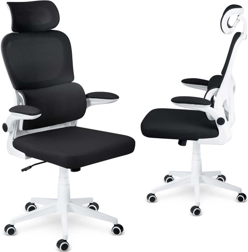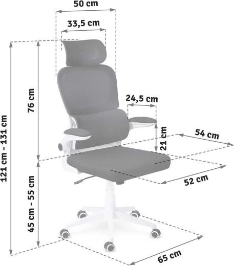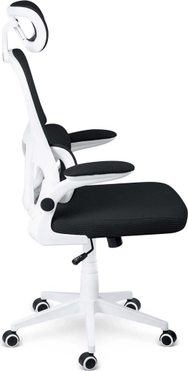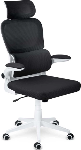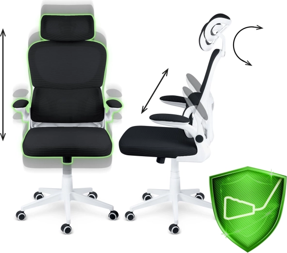 A SOFOTEL FORMAX ergonómikus szék elegáns fekete–fehér kivitelben ötvözi a kényelmet, légáteresztést és modern dizájnt. Állítható magasságot kínál SoftUp gázlifttel, hintamechanikát SoftSwing a rövid pihenőkhöz, állítható fejtámlát és deréktámaszt az egészséges ülésért. A csendes gumírozott kerekek óvják a padlót, az ötágú talp pedig stabilitást és egyenletes mozgást biztosít.