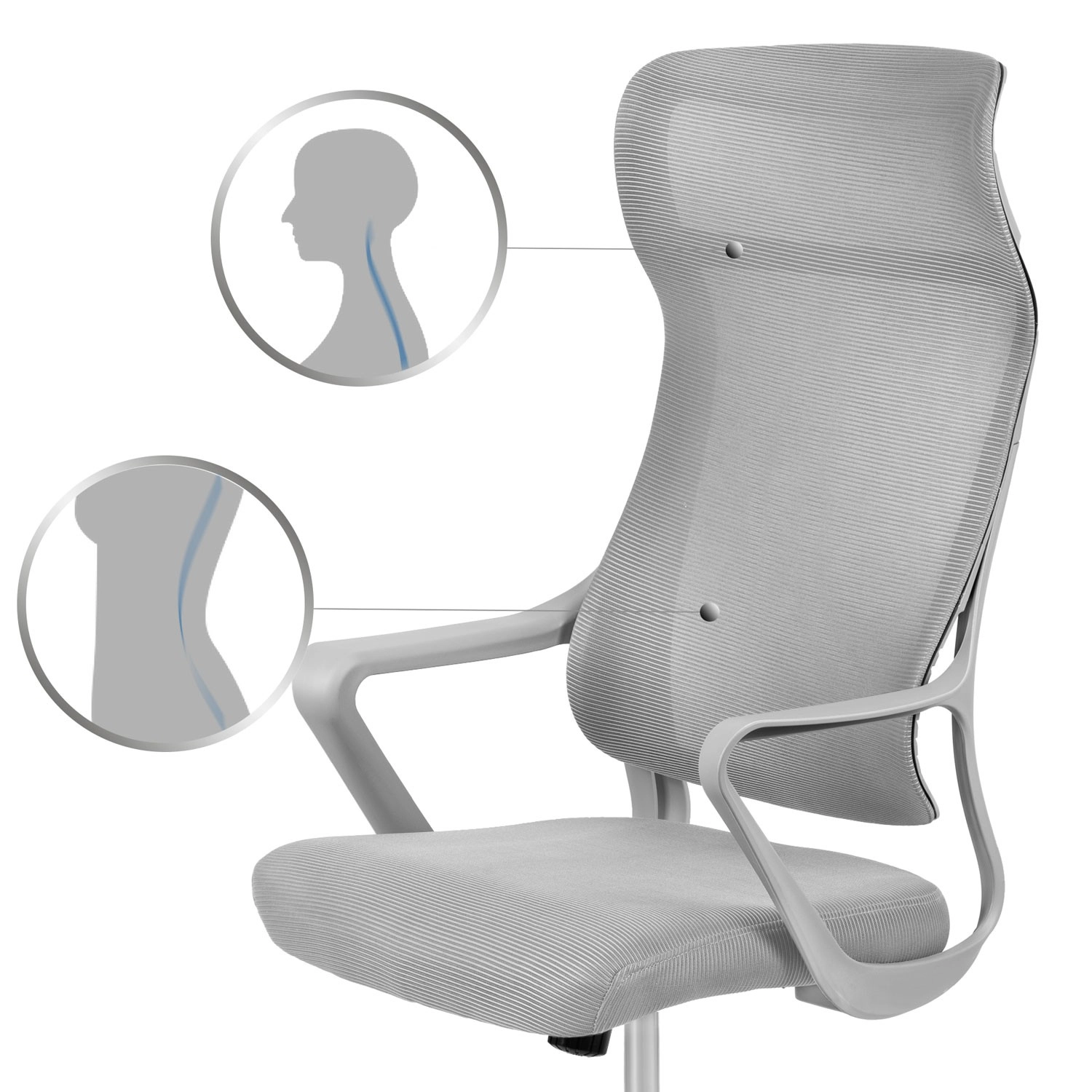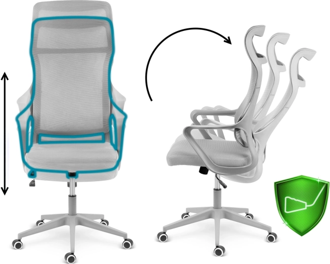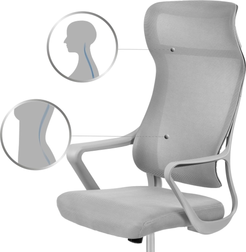 A hálós háttámla biztosítja a levegő keringését, szárazon tartja a hátat, és ergonomikus ágyéktámaszt nyújt az egészséges, egész napos üléshez.