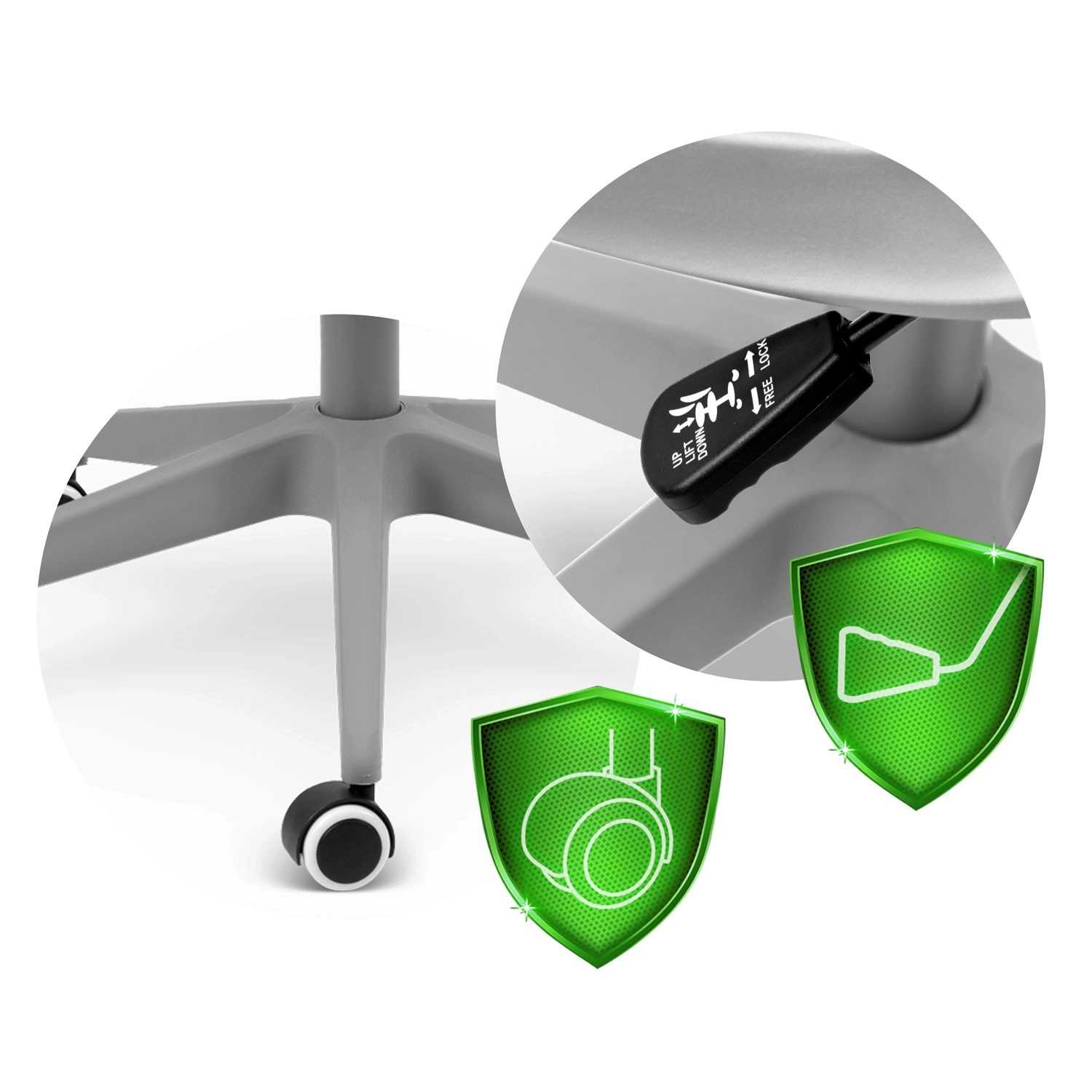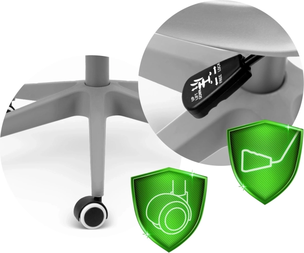 A tartós gázlift gyors és precíz ülésmagasság-állítást tesz lehetővé, hogy mindig megtarthassa a helyes pozíciót az asztalnál.