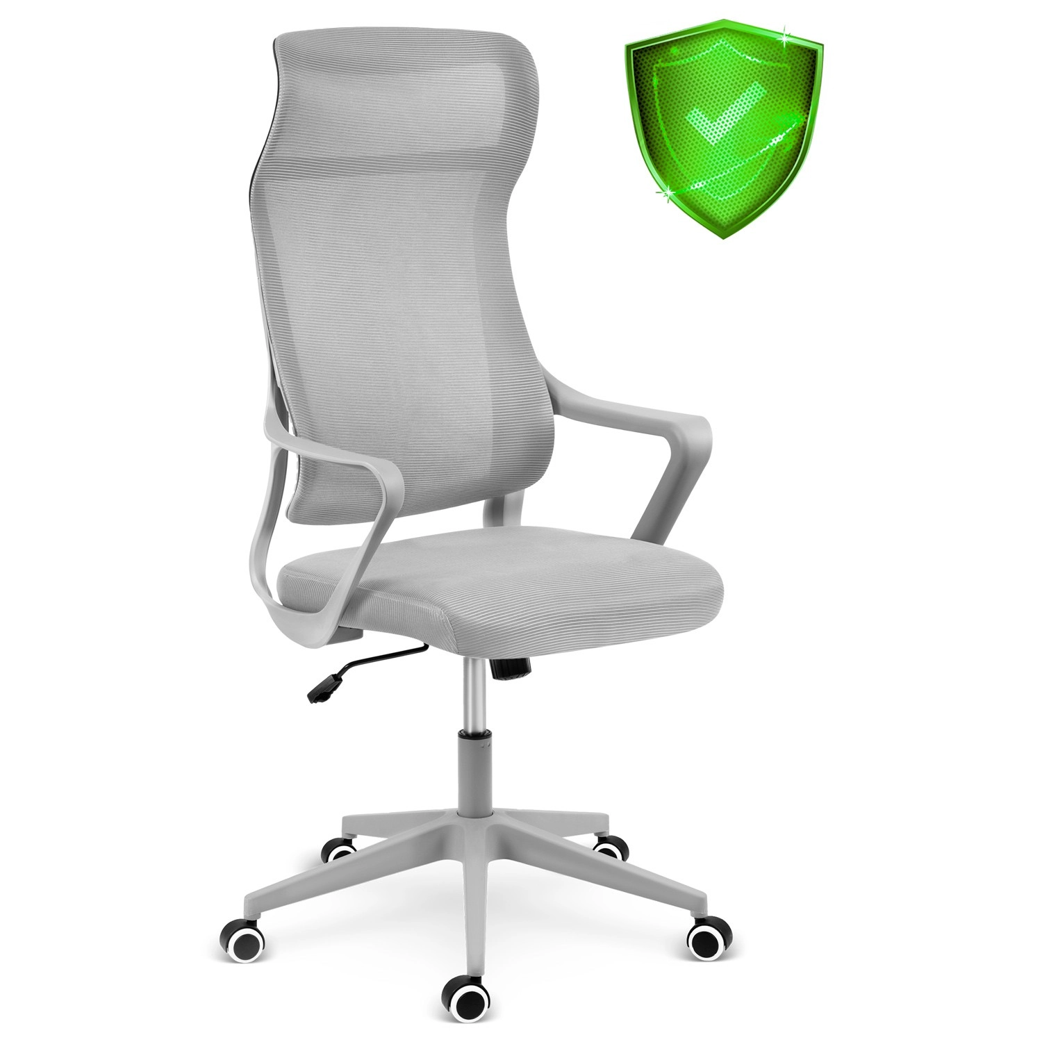 Az ergonomikusan formázott ágyéktámasz segíti a helyes testtartást, az erős, ötagú talp stabilitást ad, a csendes, nejlon–kaucsuk görgők kímélik a padlót. A szék kiváló választás felnőtteknek és diákoknak egyaránt, letisztult, modern dizájnja pedig bármelyik munkasarokhoz illik.