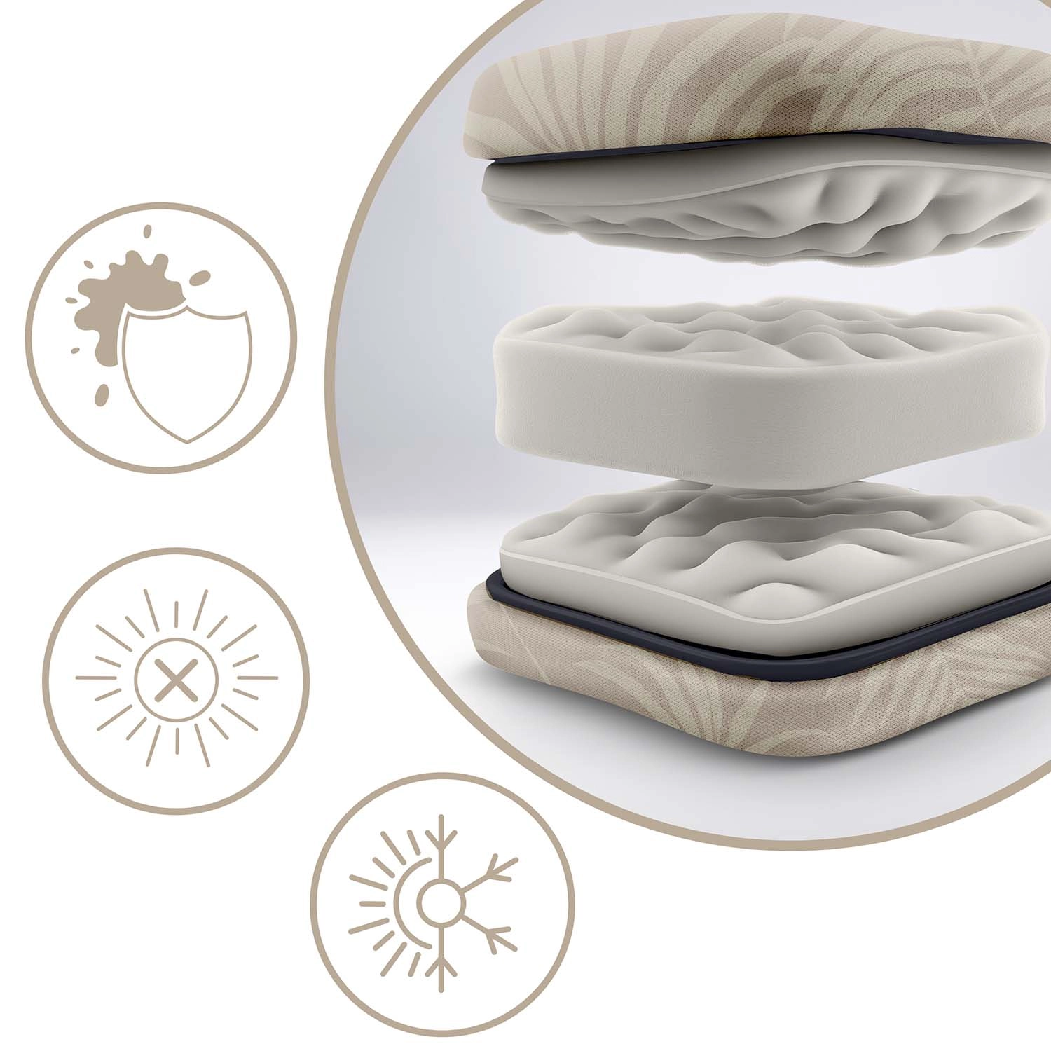 - Kiemelkedő kényelem: puha, rugalmas és steppelt párna fejpárnával, amely kíméli a nyakat és a tarkót.