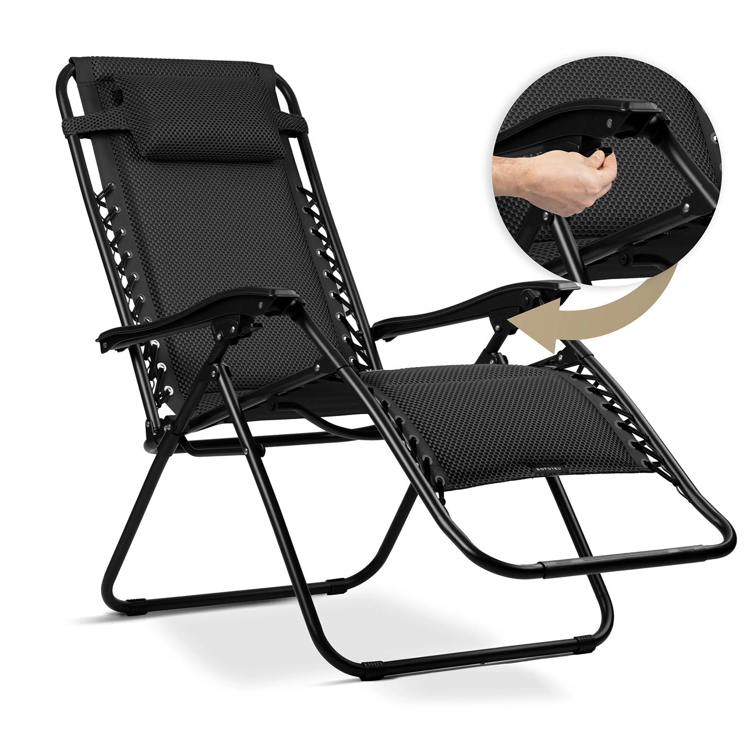 A fokozatmentes helyzetrögzítésnek köszönhetően a dőlésszöget ülő- vagy fekvőhelyzetben könnyedén a hangulatához igazíthatja. Az állítható párna pontosan ott ad támaszt, ahol szüksége van rá. A porszórt bevonatú, strapabíró acél szerkezet stabil, tartós és felkészült a gyakori kültéri használatra.