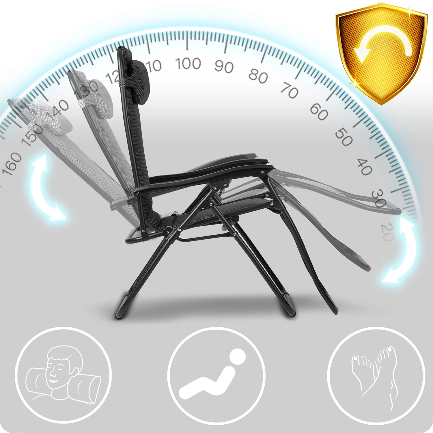 A fokozatmentes dőlésszög-állítás rögzítéssel lehetővé teszi a lábak szívvel egy vonalba helyezését. Ez javítja a vérkeringést, tehermentesíti a gerincet és teljes ellazulást nyújt a testnek.