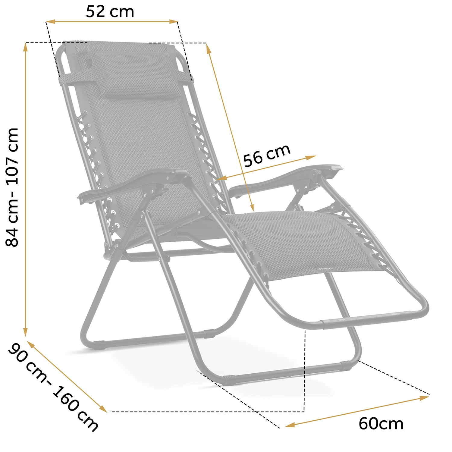 A porszórt acél váz hosszú élettartamot és stabilitást biztosít. A nyugágy könnyen összecsukható, és magával viheti a teraszra, az erkélyre vagy akár a nyaralásra is.